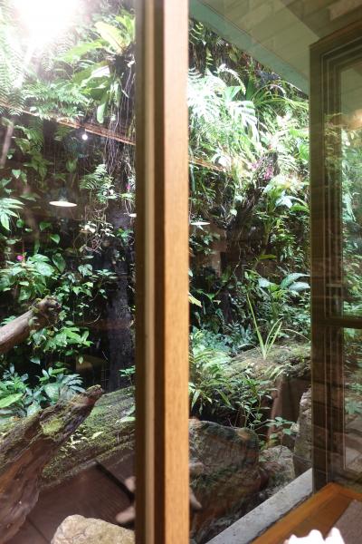窓があって外は見えないのですがグリーンが見えて密林の中にいる感覚で閉塞感が無いような工夫がなされていました。