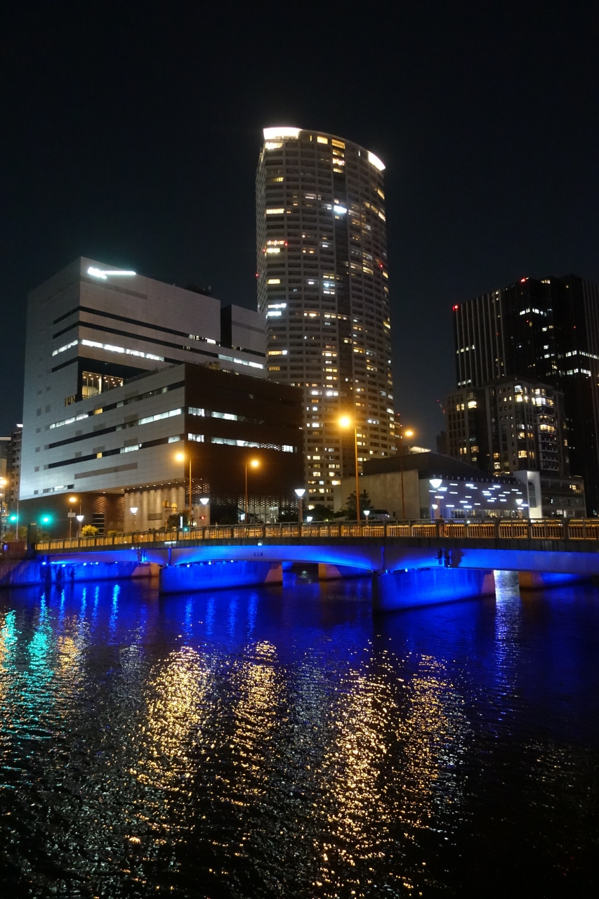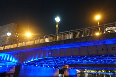 昼間は割と普通の地味な橋という印象でしたが夜はライティングされてブルーの光が闇に浮かぶ様はなかなか幻想的でした。