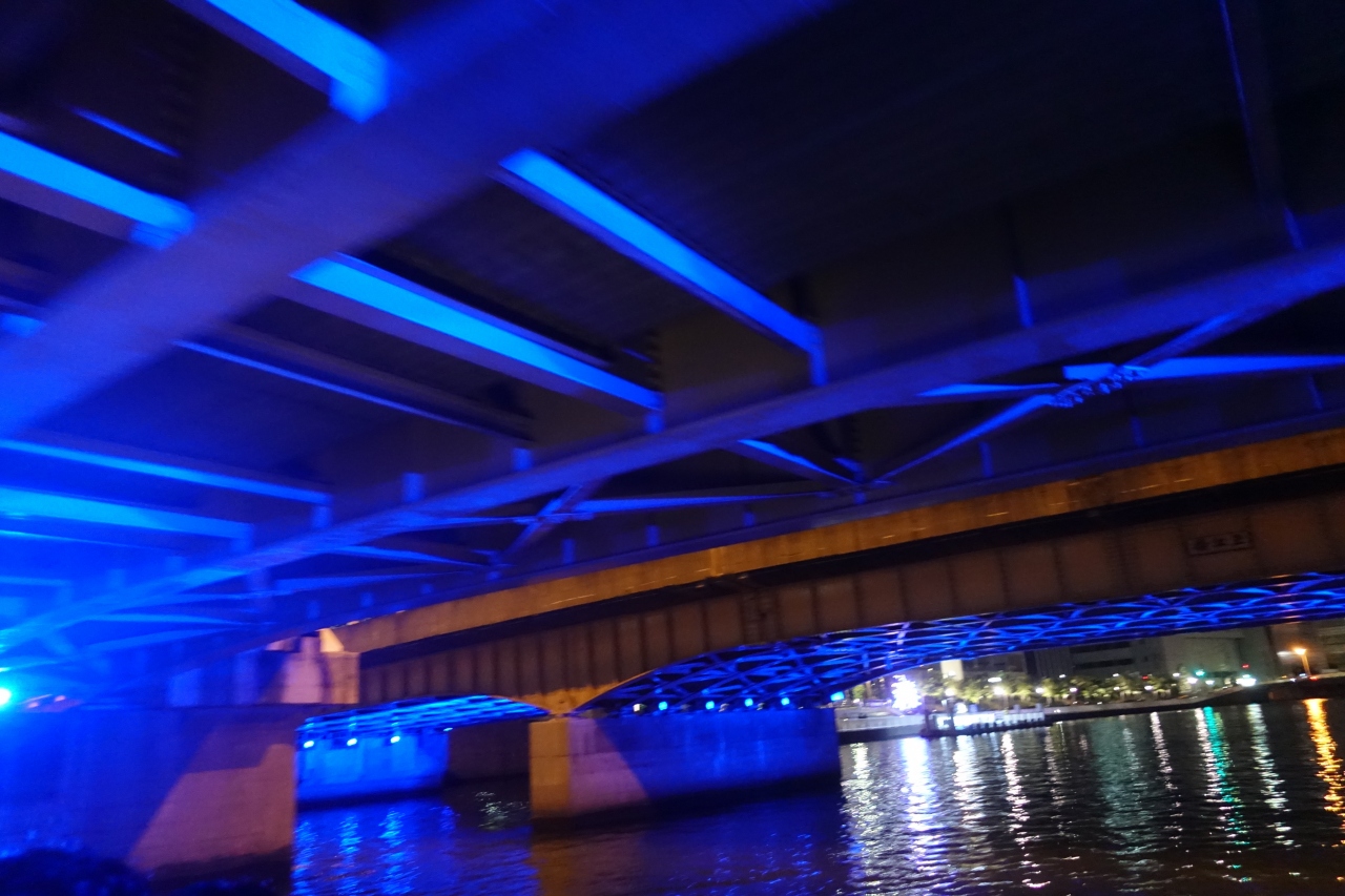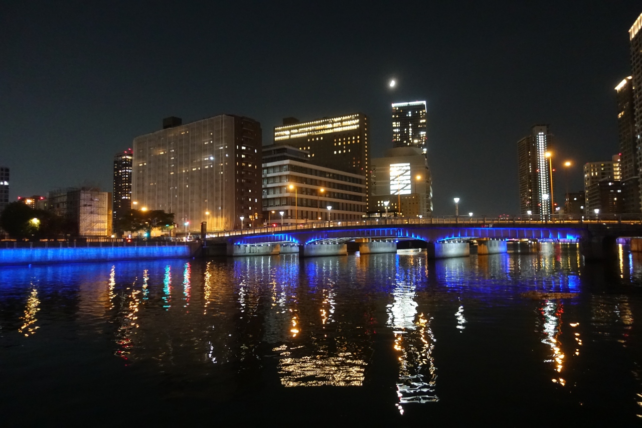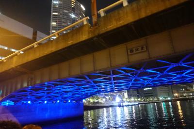 堂島川の夜景見物のリバークルーズに乗船するためにこの橋を通りました。