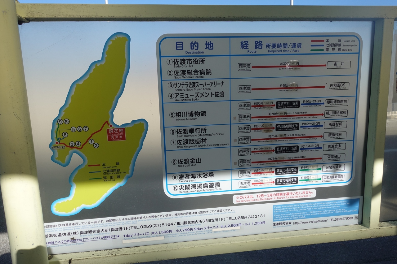 両津港の観光案内所で1日券をプッシュされたのでそれを利用しました。