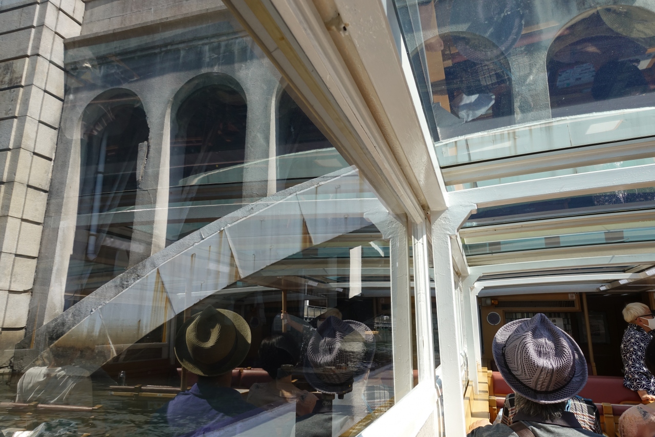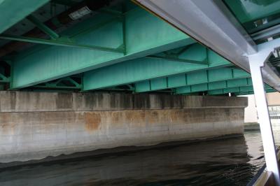 私が参加したリバークルーズの船は特殊な船で川の水を船体に入れて船自体を沈めながら運行できるのでこの橋の下を通過できました。