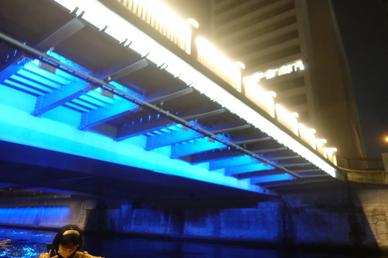 夜にこの橋の下を通ったときは青いライティングで一際目立っていました。- 旅行時期