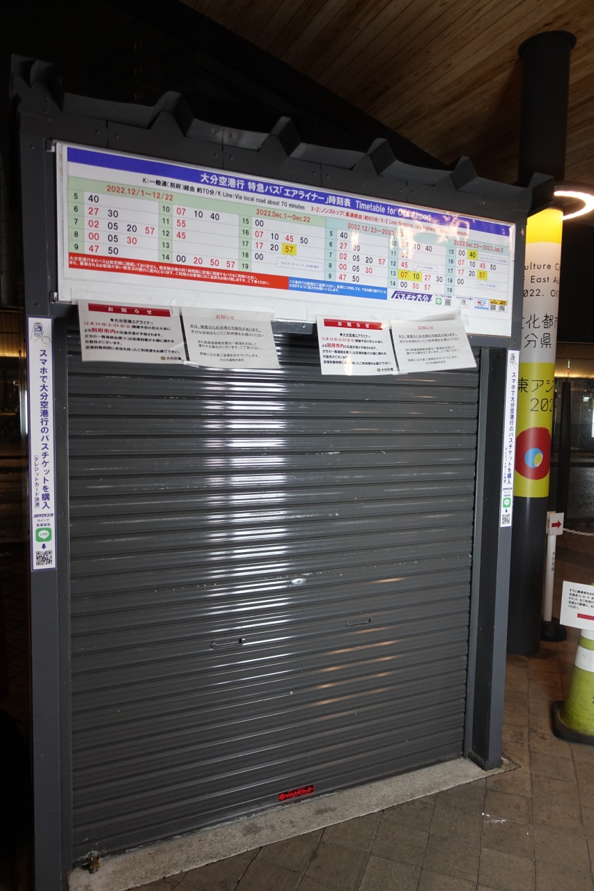5時40分のバスに乗るために5時20分に到着しましたが券売機のシャッターが下りたまま。