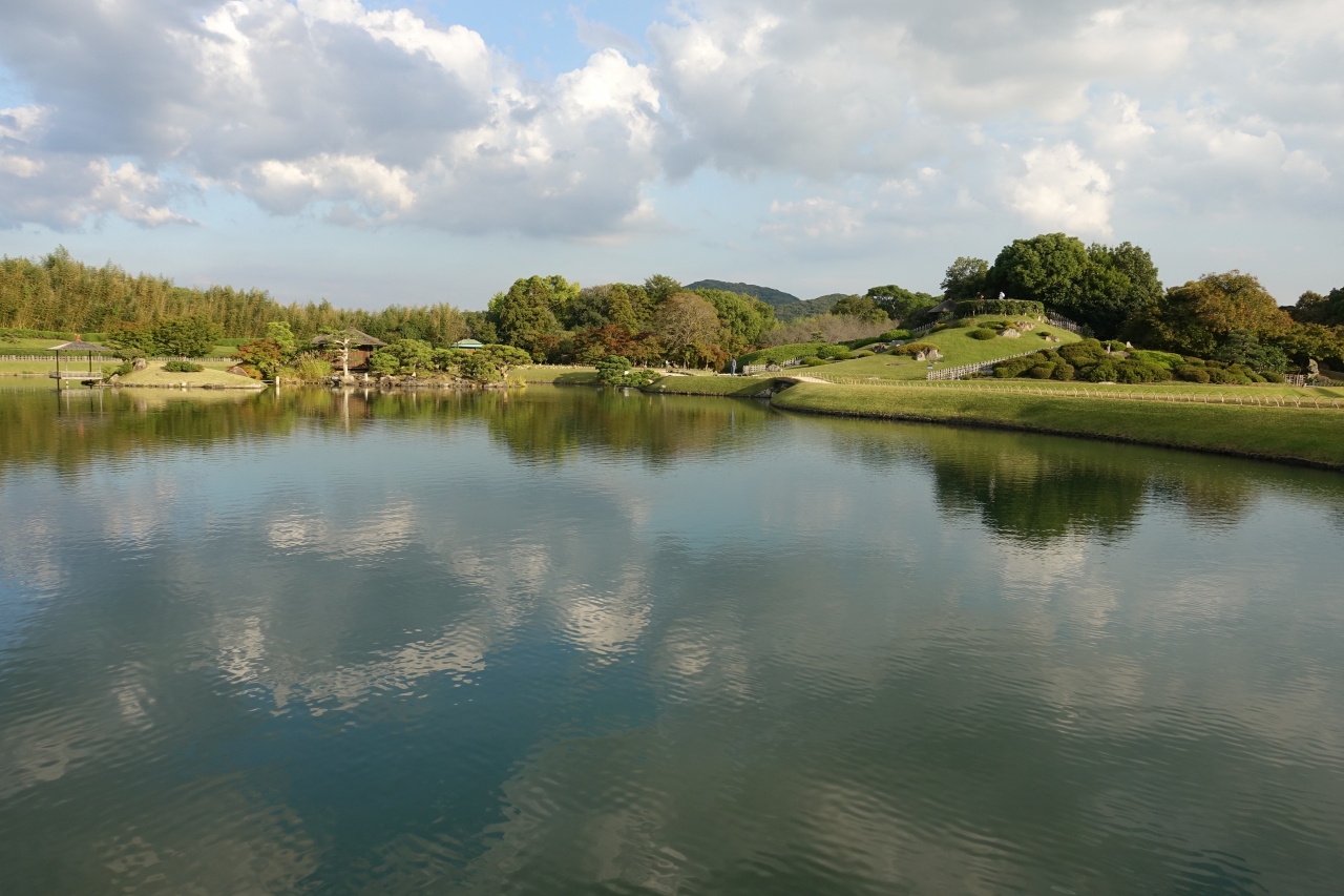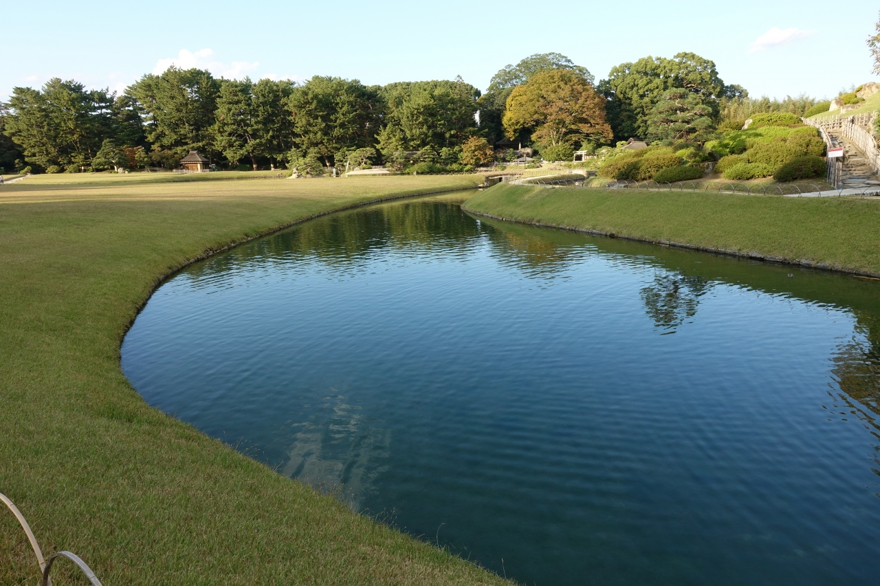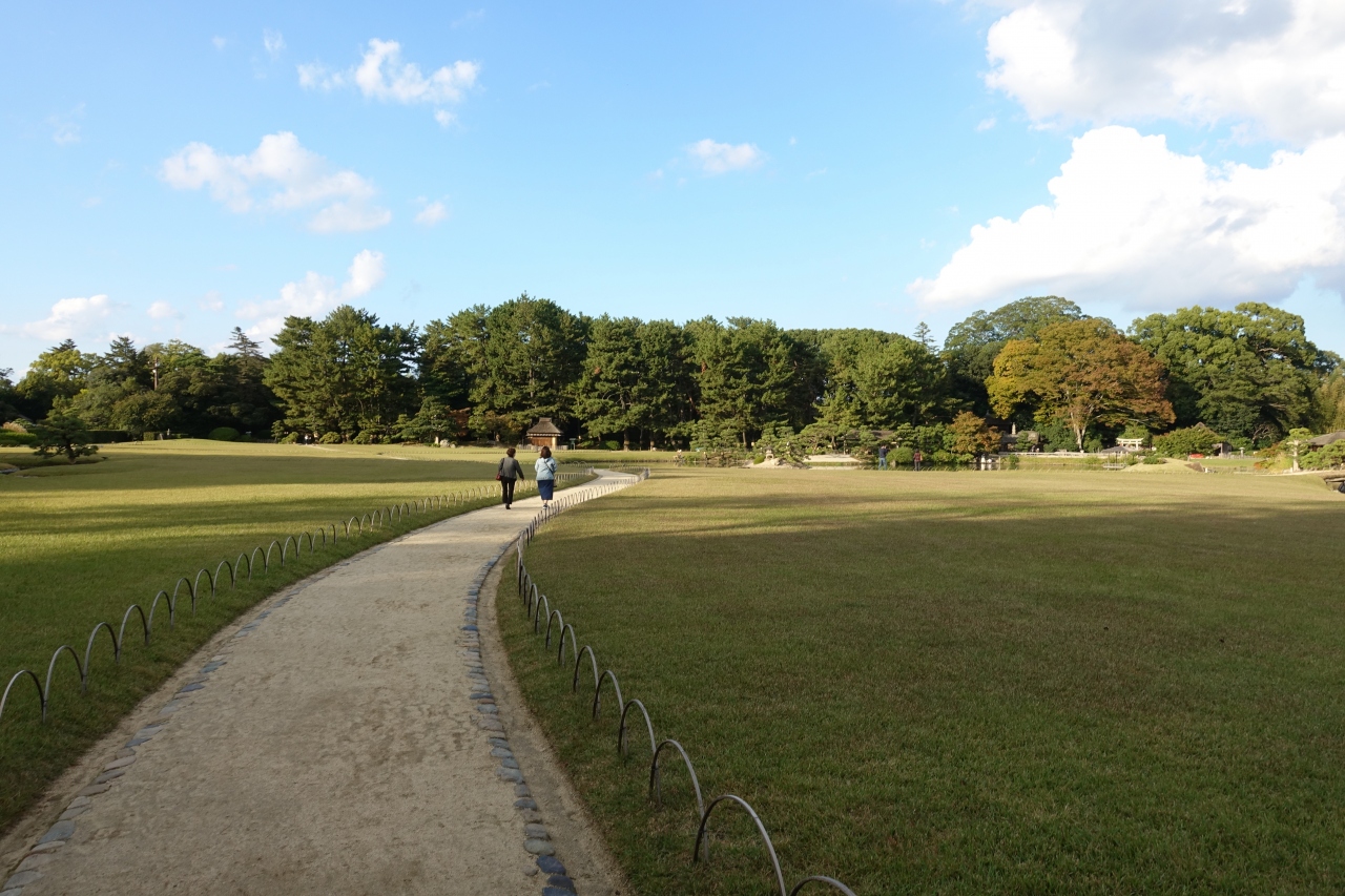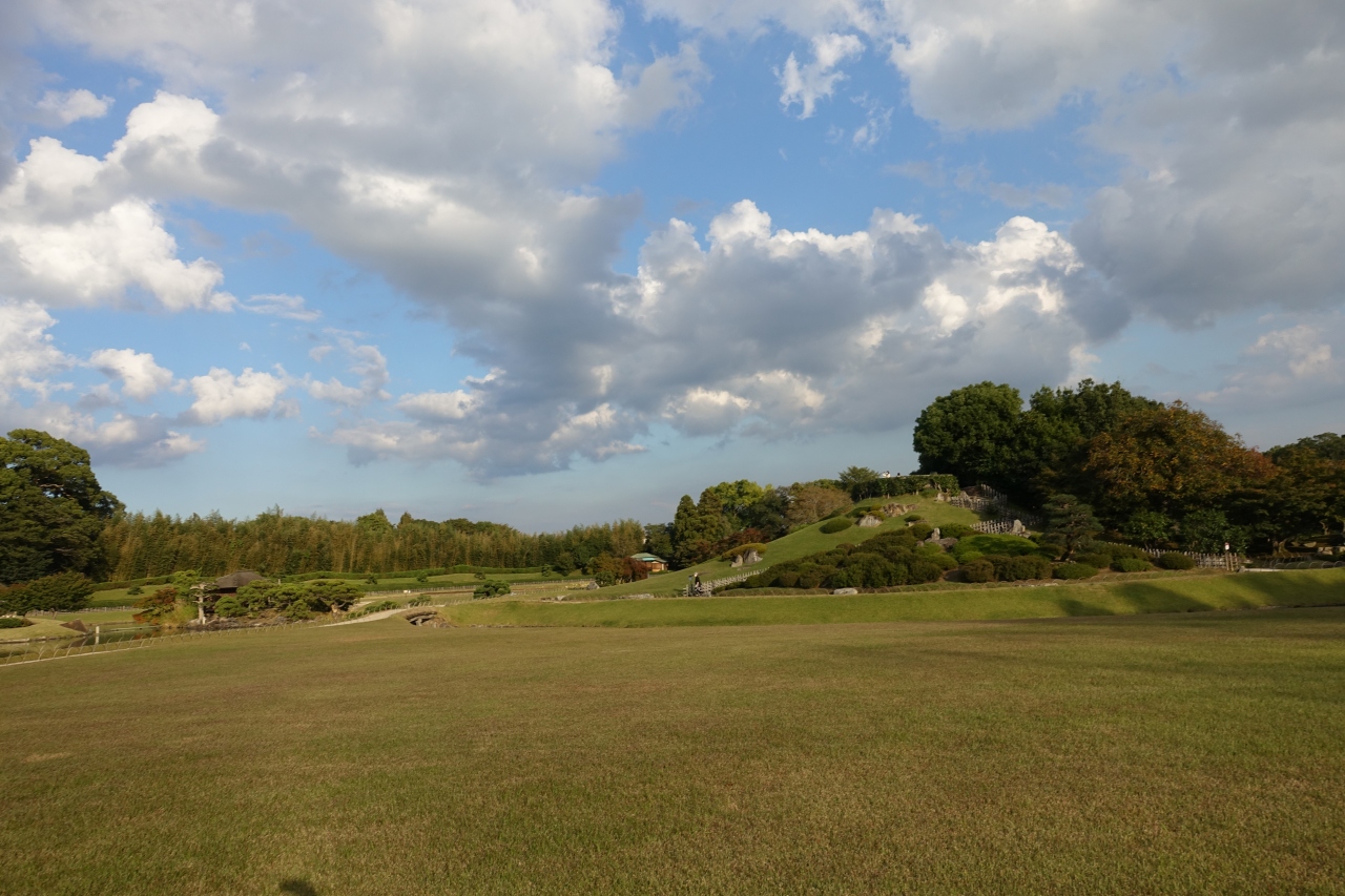 偕楽園、兼六園と並び称される庭園ですが風景は全く異なり河川地形を生かした広々とした伸びやかな景観が特徴ですね。