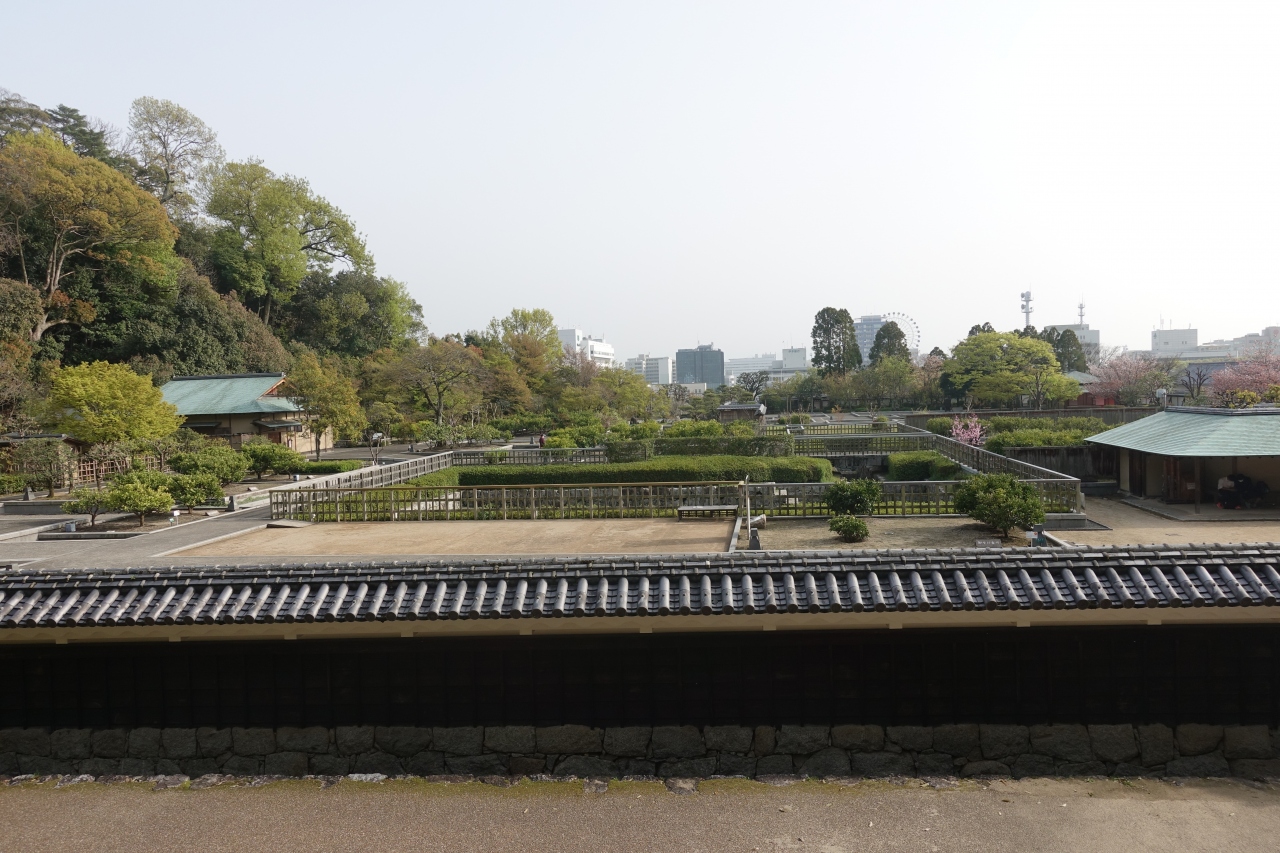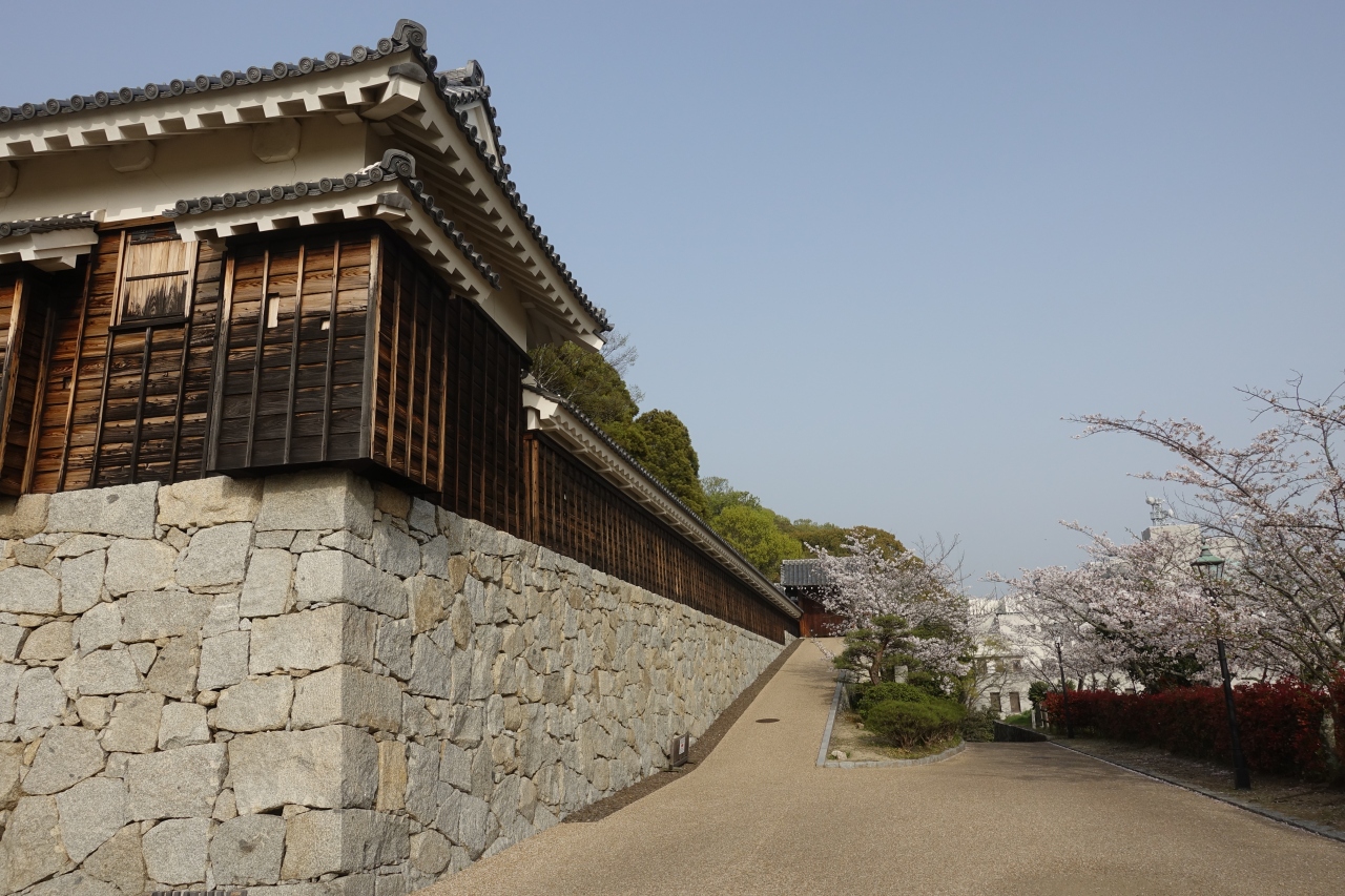 一見、遠目には大天守が続いて見えますがこの塀の後ろには広場があって兵隊溜まりが作れるようになっています。