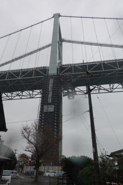 関門トンネル人道を門司から下関まで歩いたので関門橋の両側を至近距離から見ることができた。