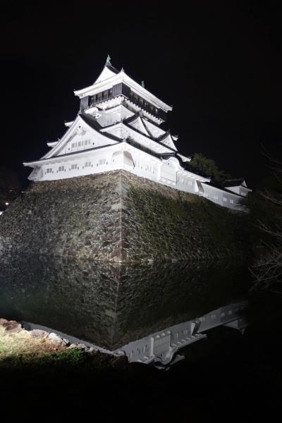 ライトアップされた小倉城は幻想的。