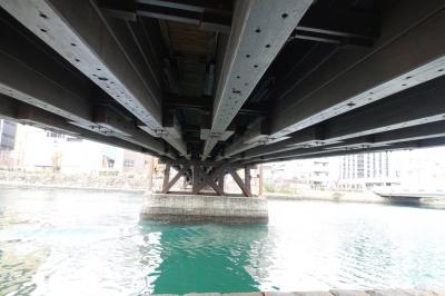 元は木造の橋で明治時代には鉄橋でしたが現在はボンゴシ材、チーク材ですが裏を見てみたら鉄骨材でした。