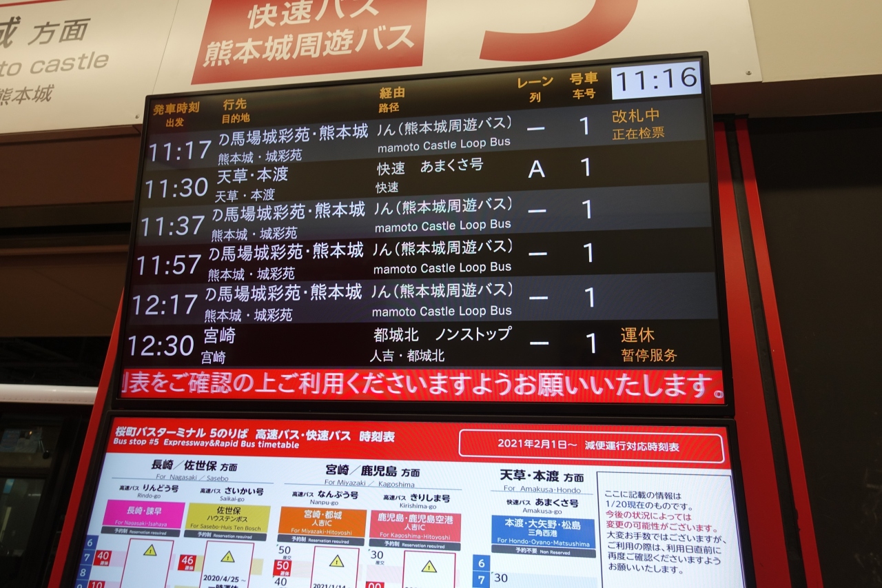 空港バスからあまくさ号に乗り換えようと表示に従いコンコースへ上がったらそこから先の目的地を示す標識が無いんですね。