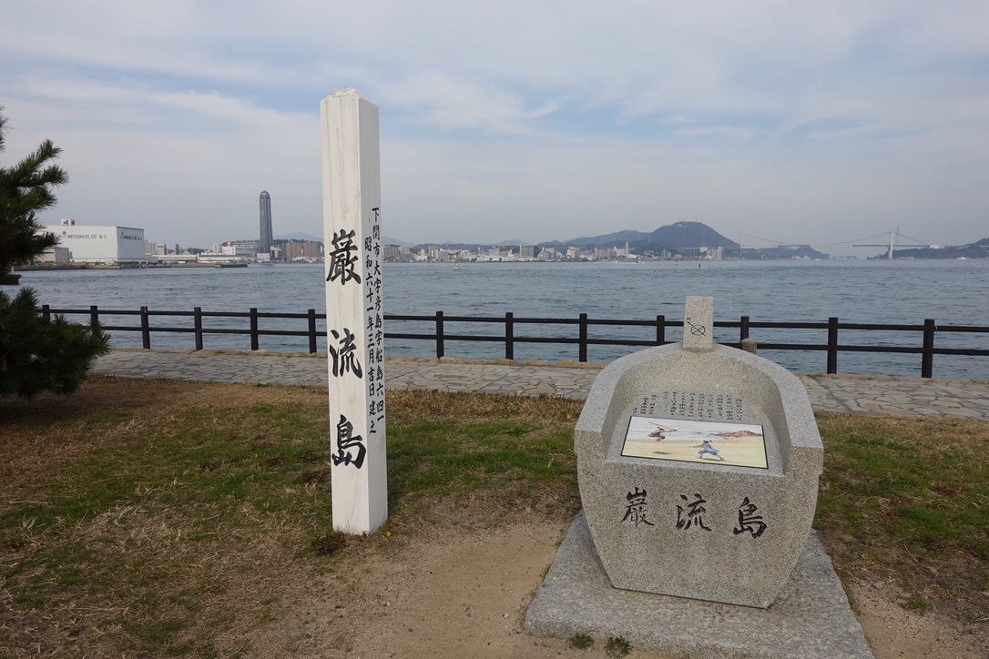 関門海峡に沿ったみもすそ川公園内に碑が建っています。