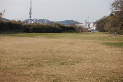 公園内に赤い橋がかかってますが川は流れていなくて