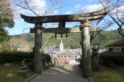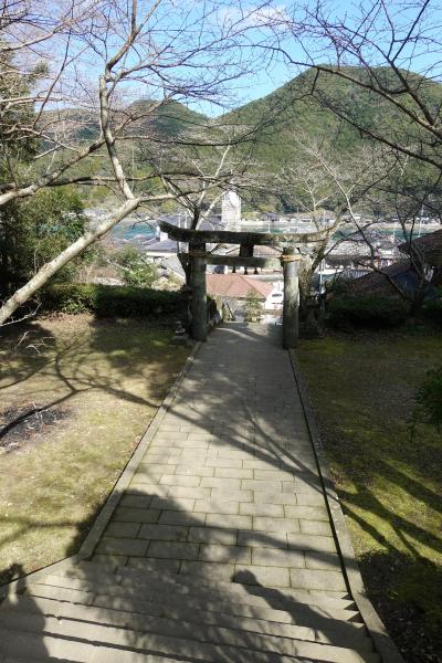 神社は高い場所にあり鳥居越しに教会が見えるということで評判だそうです。