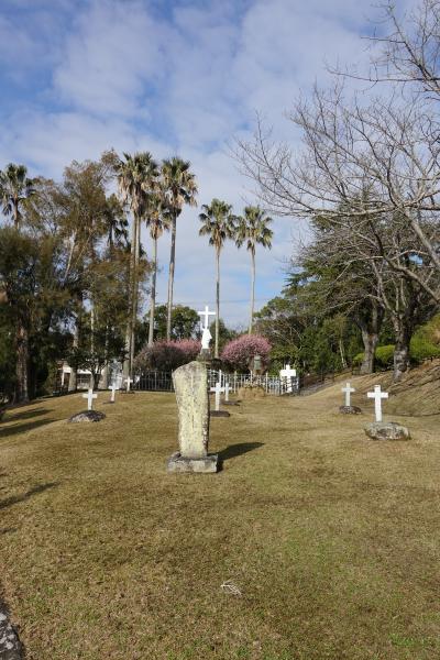 神社の石段の左手には神父のお墓と以前の崎津教会のあった場所があります。