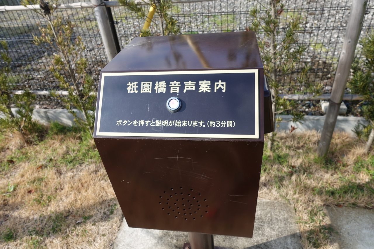 この公園には橋の解説の自動音声の機械がありボタンを押すと為になる話が聞けます。