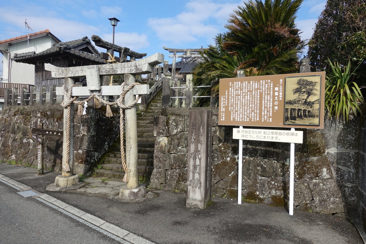 富岡城の裏手の駐車場前の食堂の裏にあります。