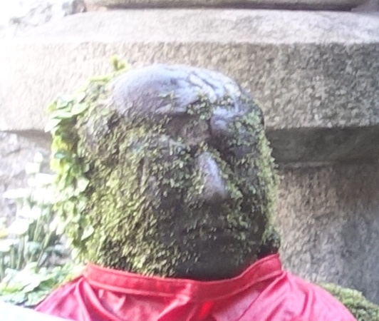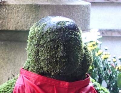 このお不動さんの両脇にある像が2体ありますが苔むしていません。
