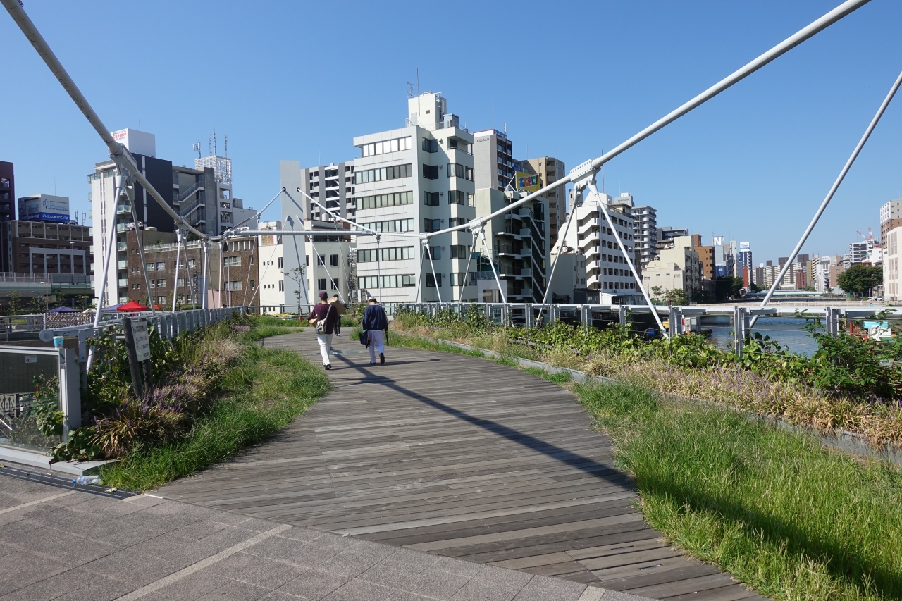 湊町には大きな吊り橋があって橋の上は公園のように緑化されているのが意外でした。