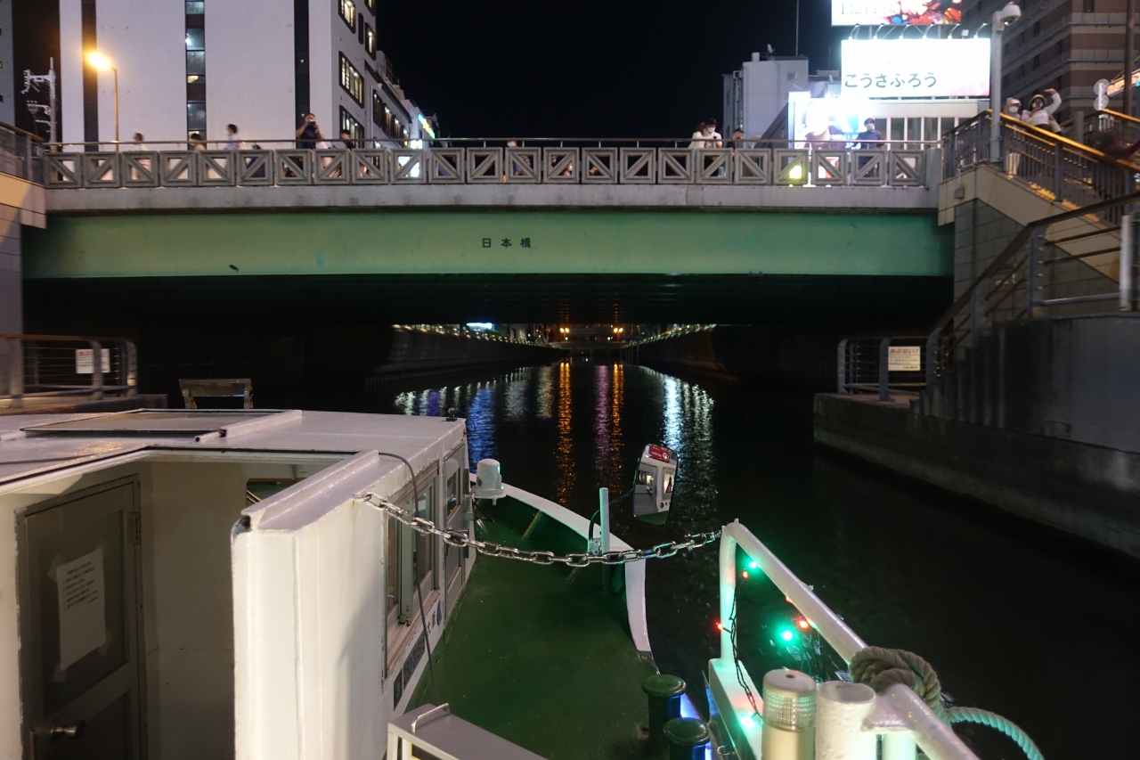 地下鉄の日本橋からも近くこの橋の上から眺める道頓堀川の夜景はなかなかの情緒を感じさせてくれます。
