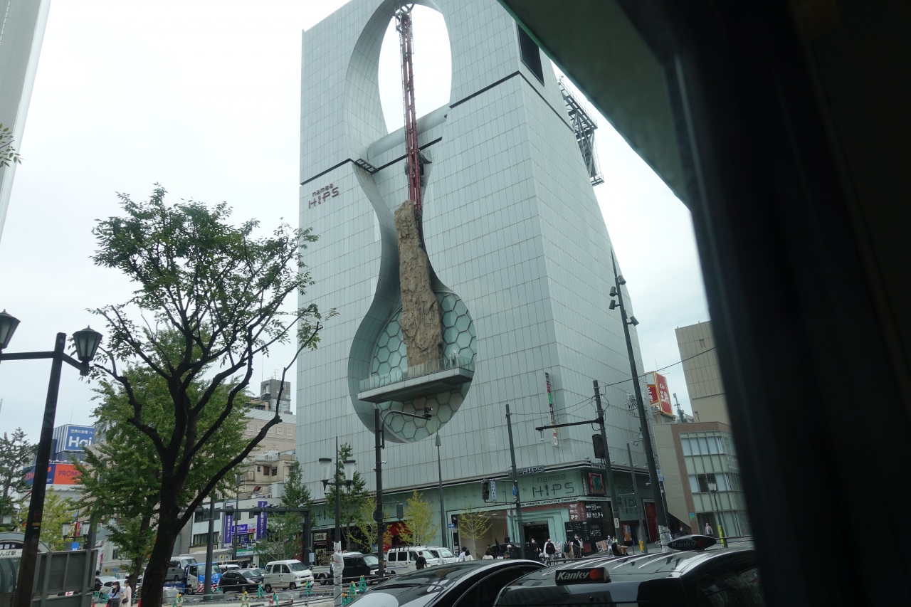 これを設計したのはバブル期に活躍した高松伸で、近くにあったキリンプラザもこの方の設計でした。