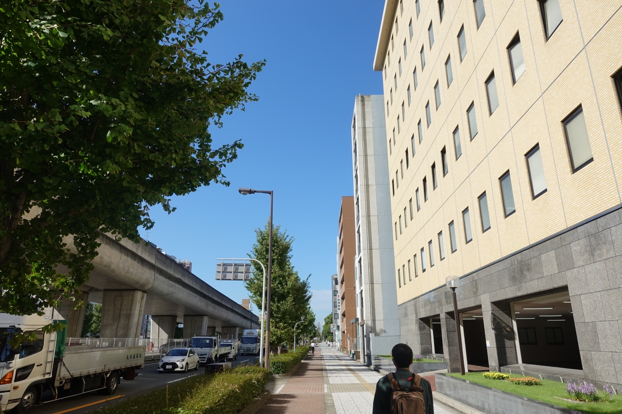 車窓の風景は工場とマンションが混在した下町っぽい景色です。