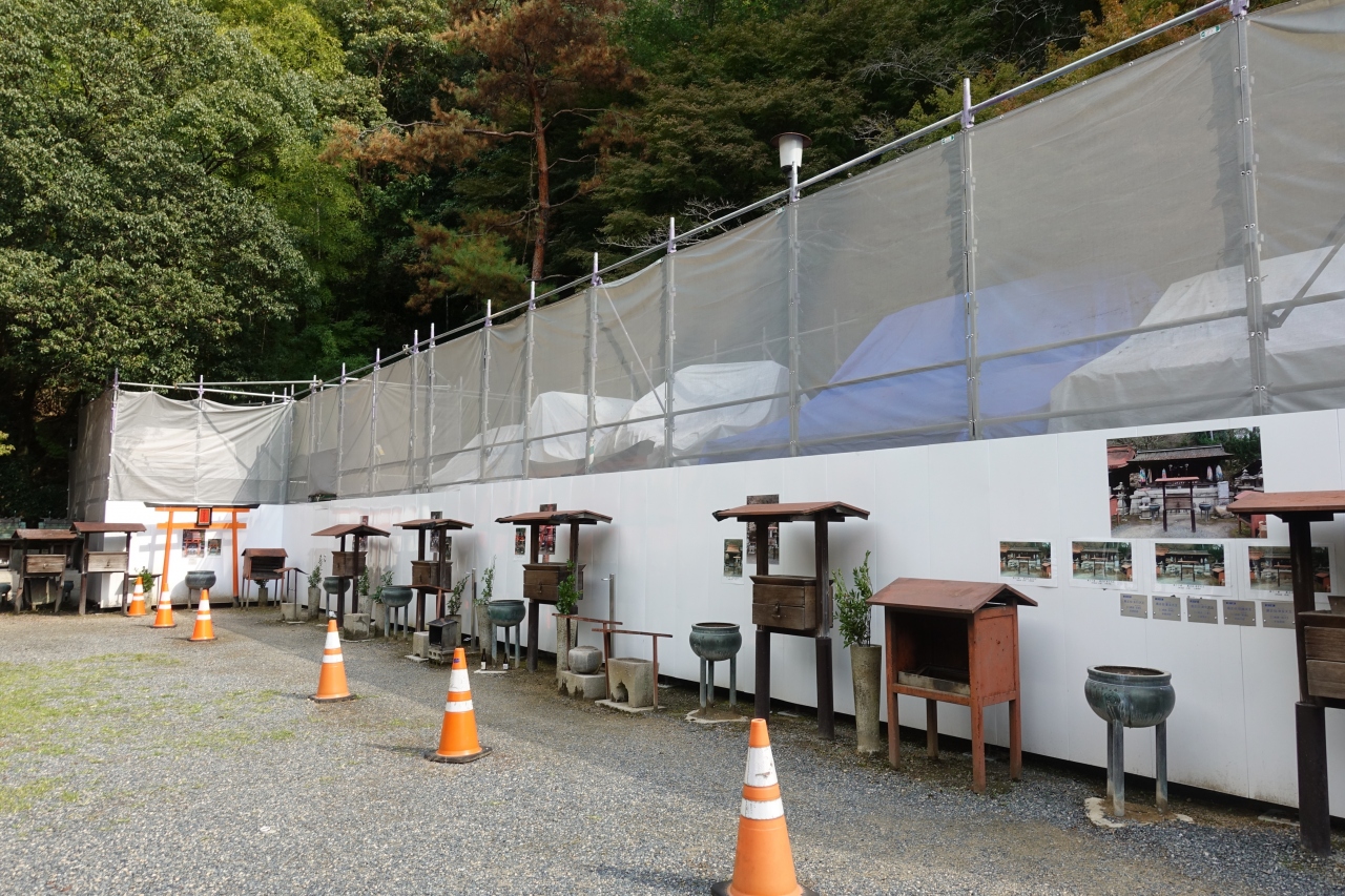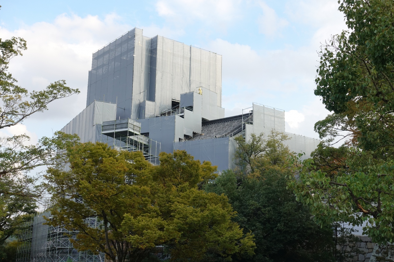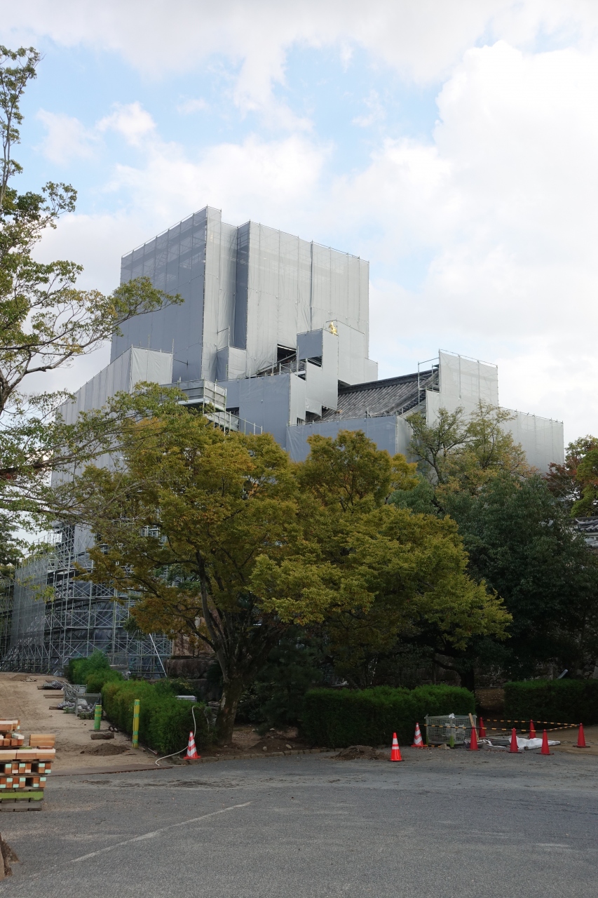 姫路城のように工事中も見学できる方法を考えていたらほめても良かったが立ち入り禁止で近づけません。