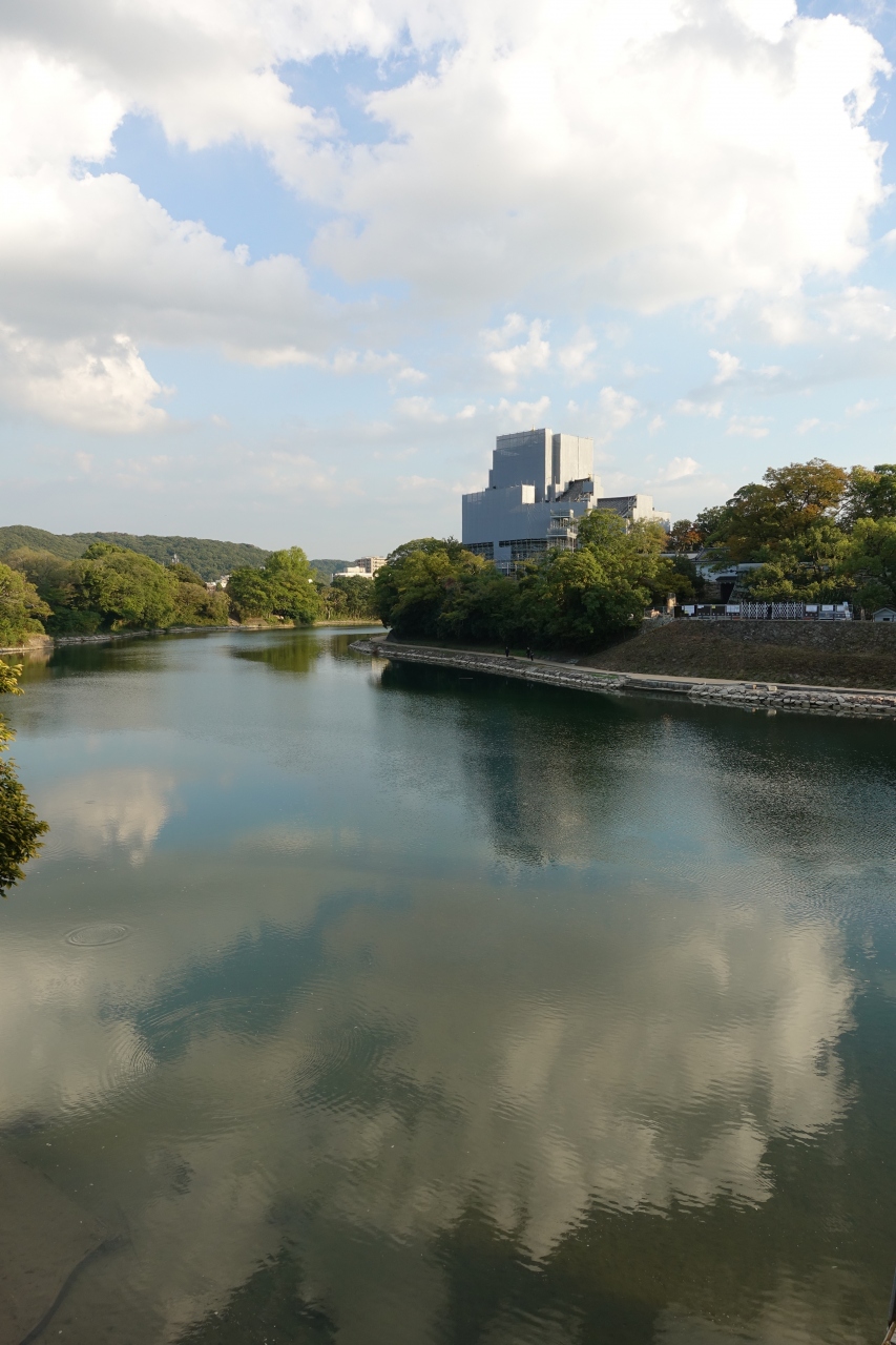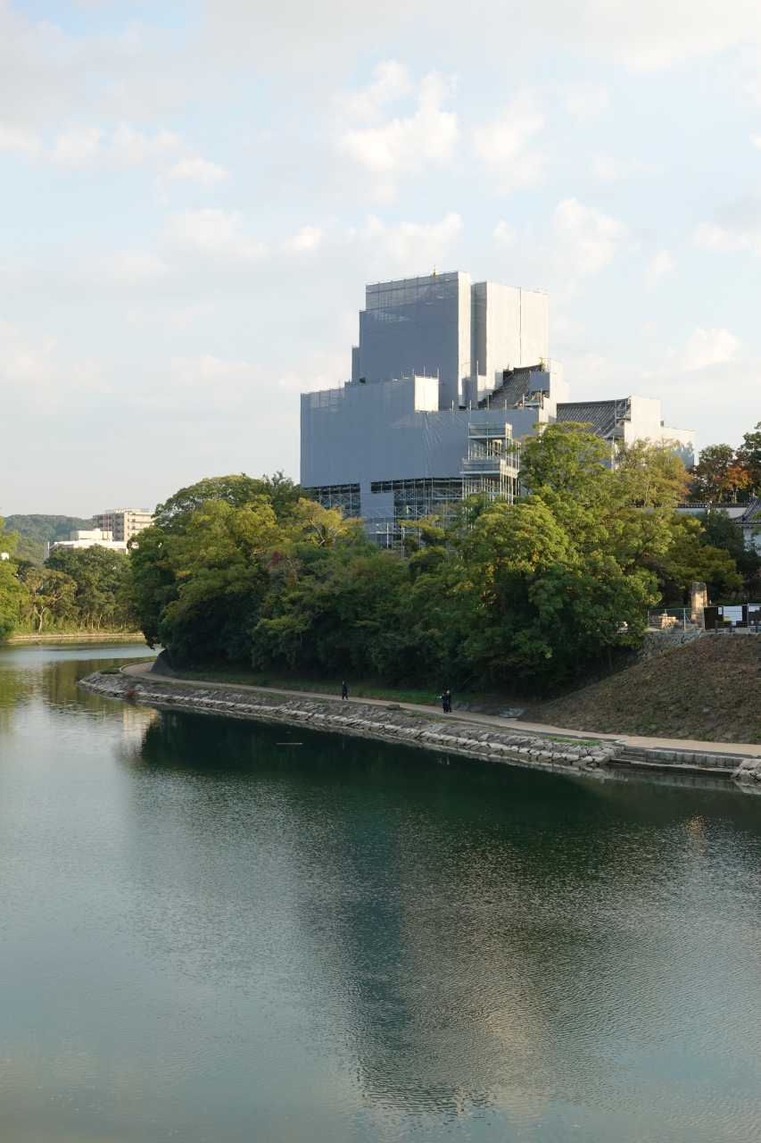 川沿いの道を行くと見ててきましたが囲いが架けられていて城の様子は見えません。