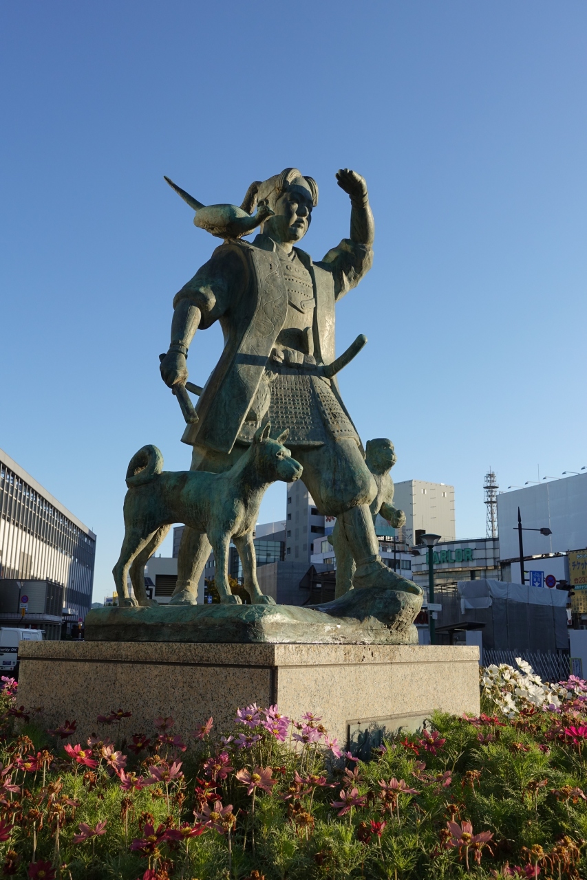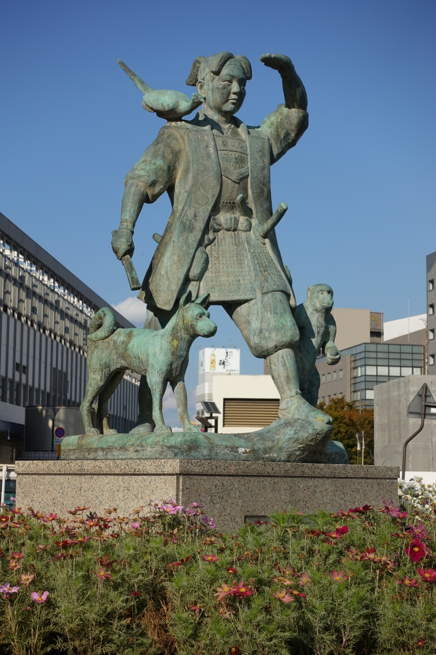 特に桃太郎像は向きが良いので朝、昼、夕方と陽の当たり方で表情を変えます。