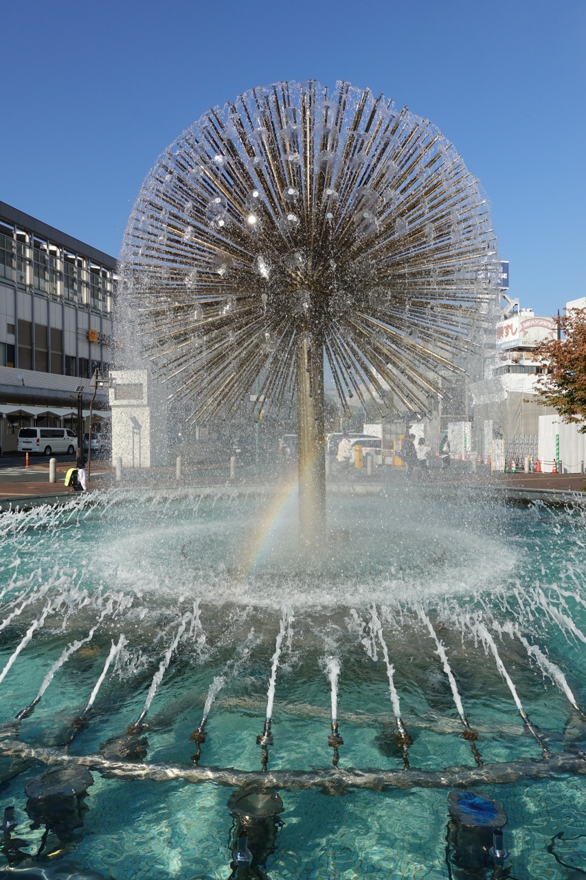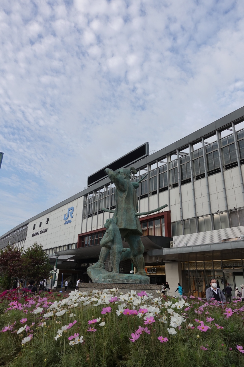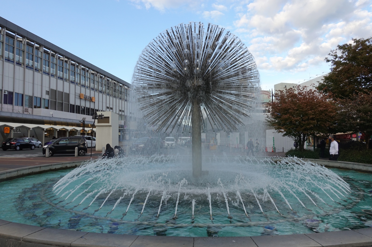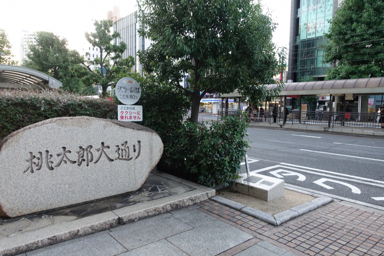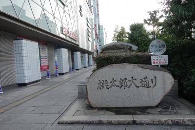 桃太郎の像と霧のでる噴水があるのでついつい写真を撮ってしまいます。