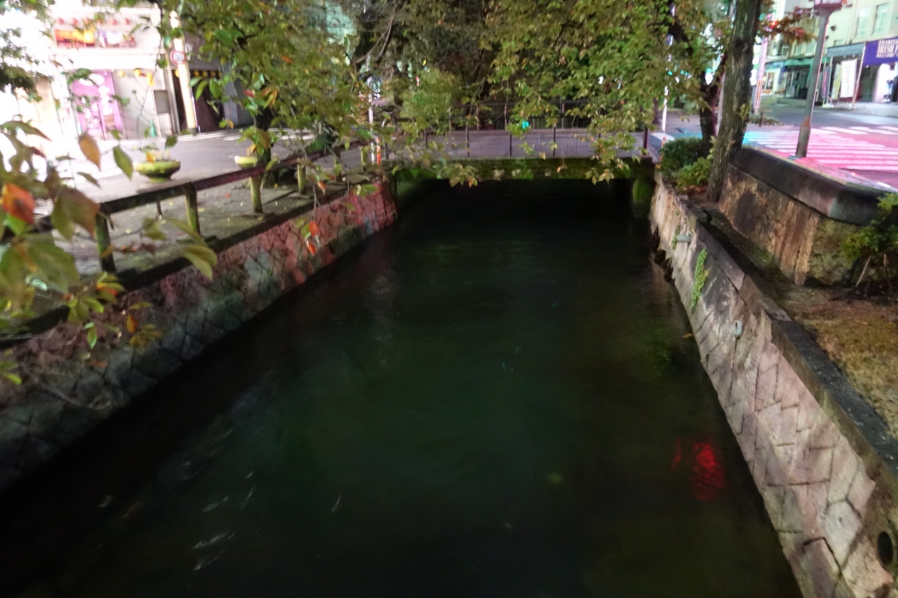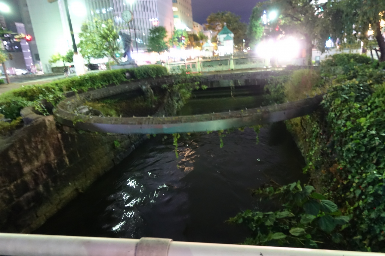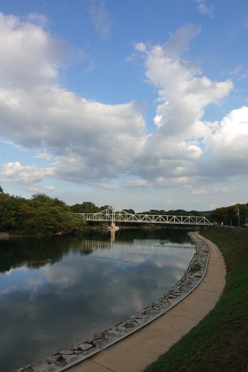 堰堤があったであろう場所が広く残されて公園風に整備されています。