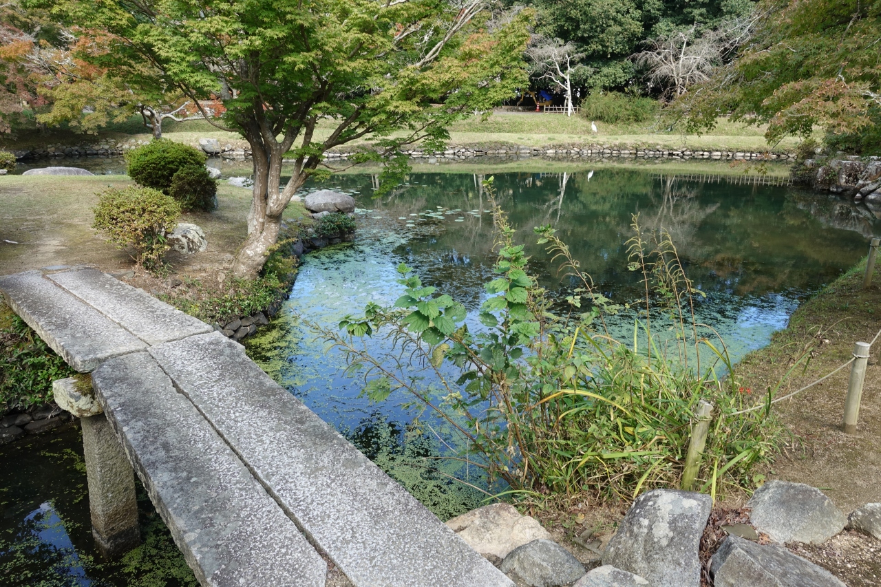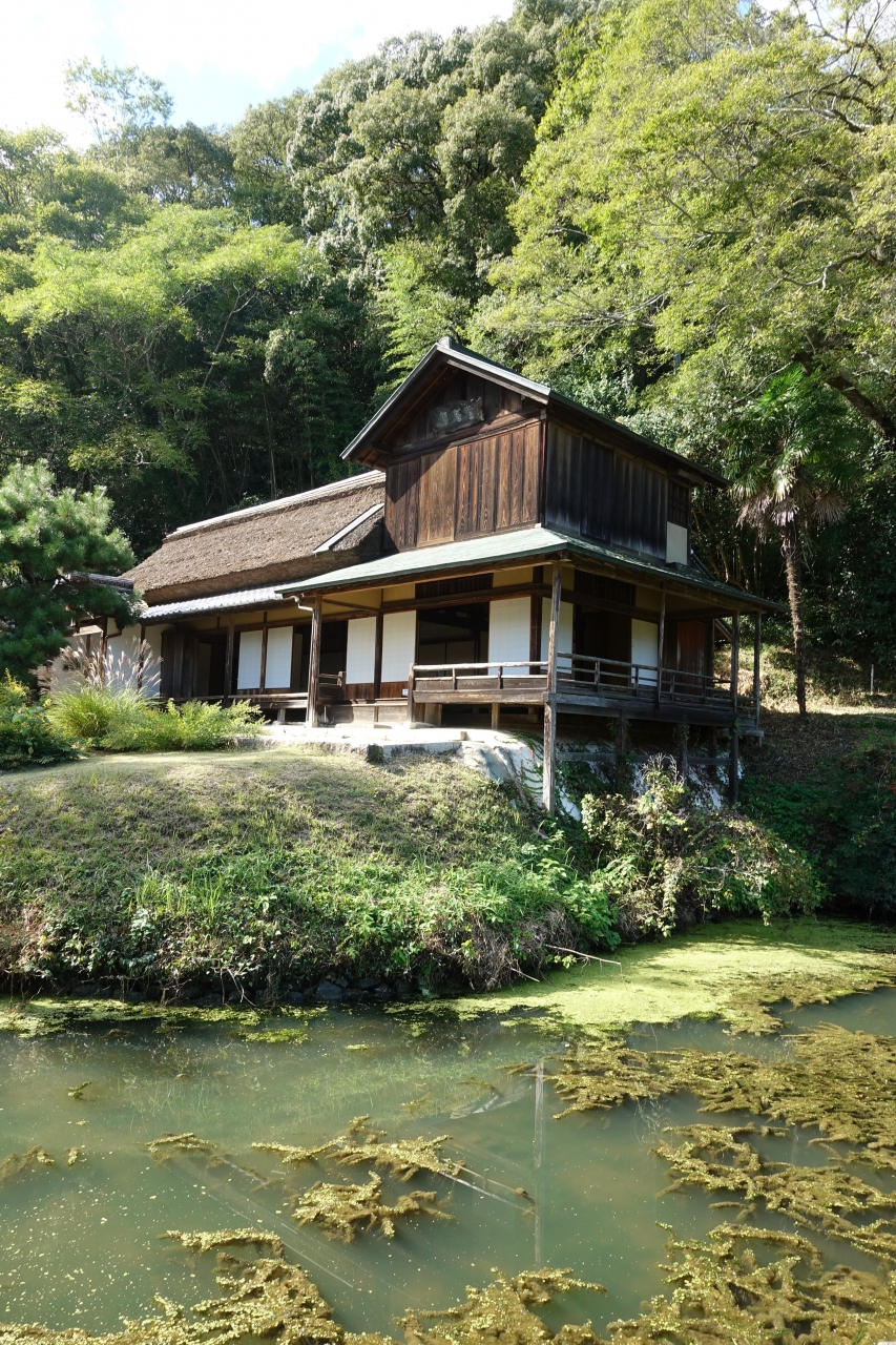 - 小ぶりだが宮地山を借景にした大名庭園らしい雰囲気