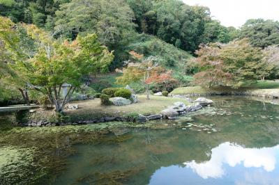 庭園は往時の様子を完全に復元している感じではないが宮地山を借景とした大名庭園で小ぶりながら伸びやかな雰囲気の庭園でした。