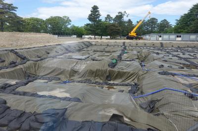 明治期に埋め立てられ軍用地のあと近年までテニスコートがありました。