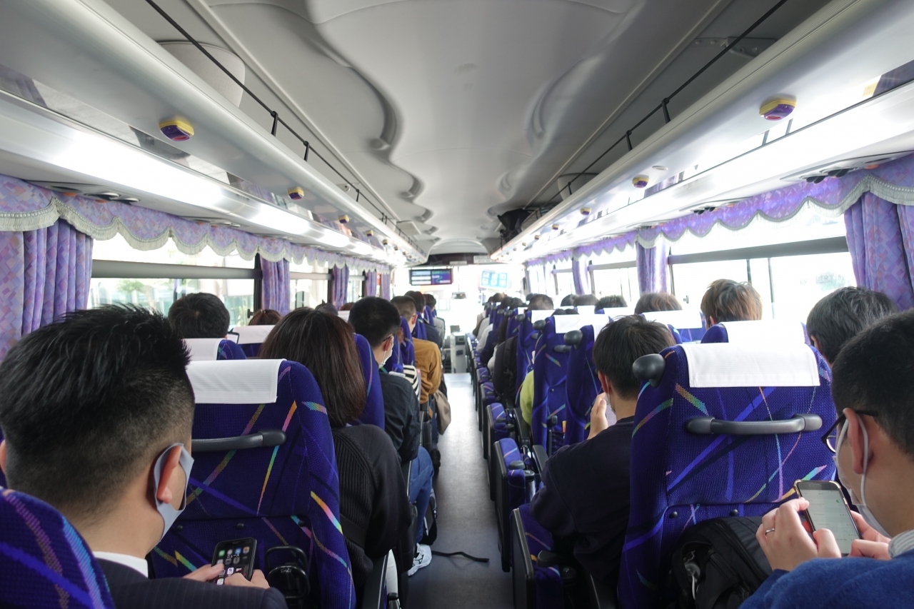 - バスなので通路は狭いし段差はある