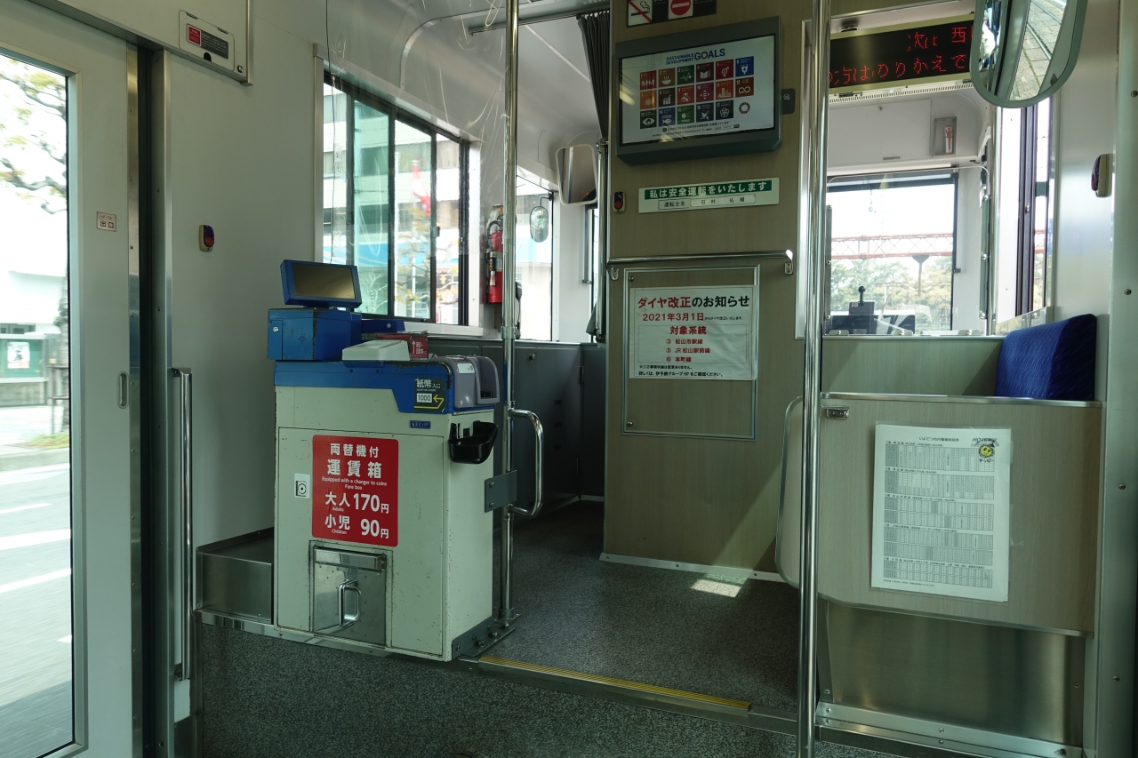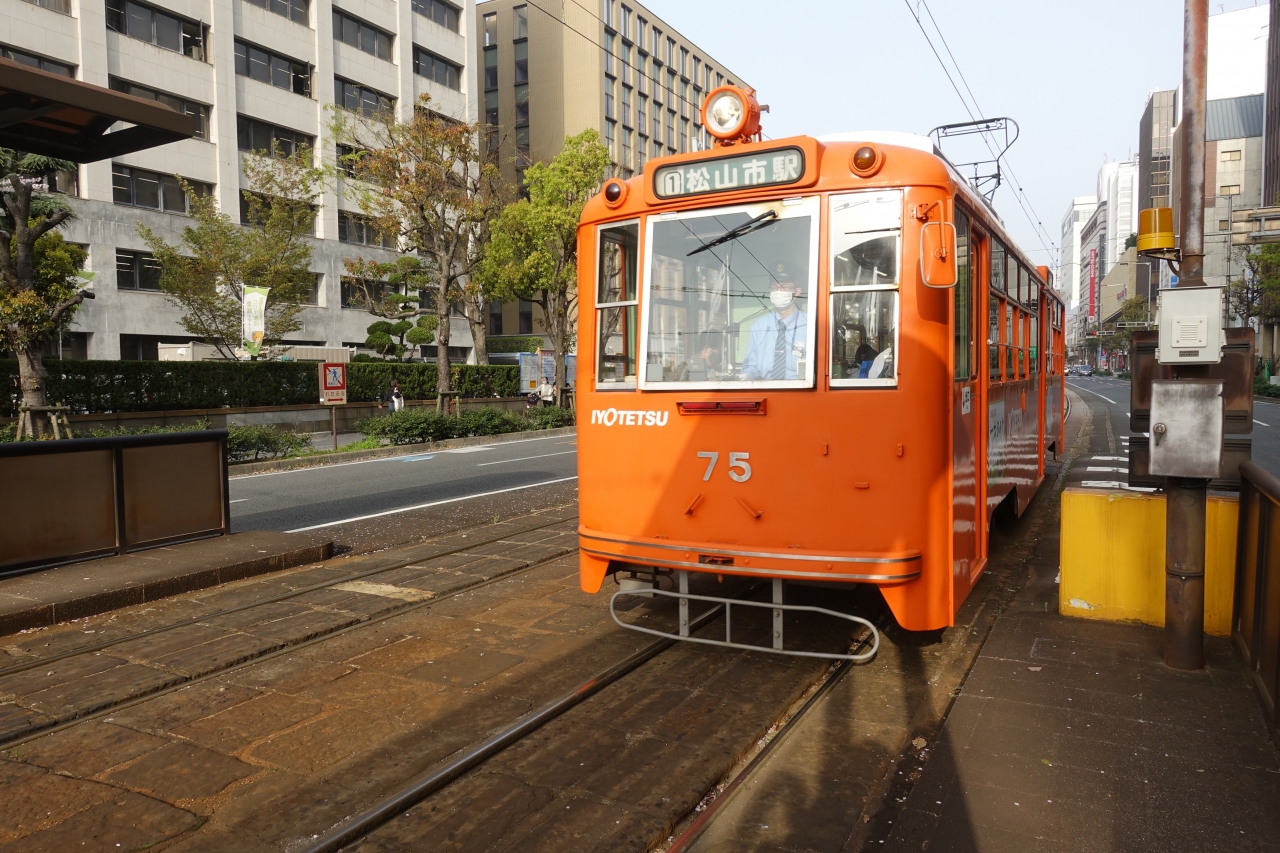 松山駅前に泊まっていたのでこの電車で大街道へ行こうと思い乗車しました。