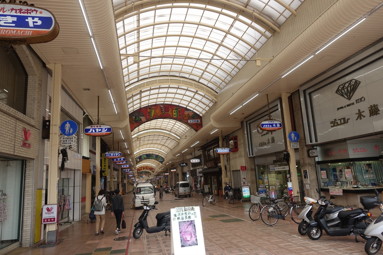 大街道停車場からここまでは人通りの多い道をややしばらく歩く感じになる。