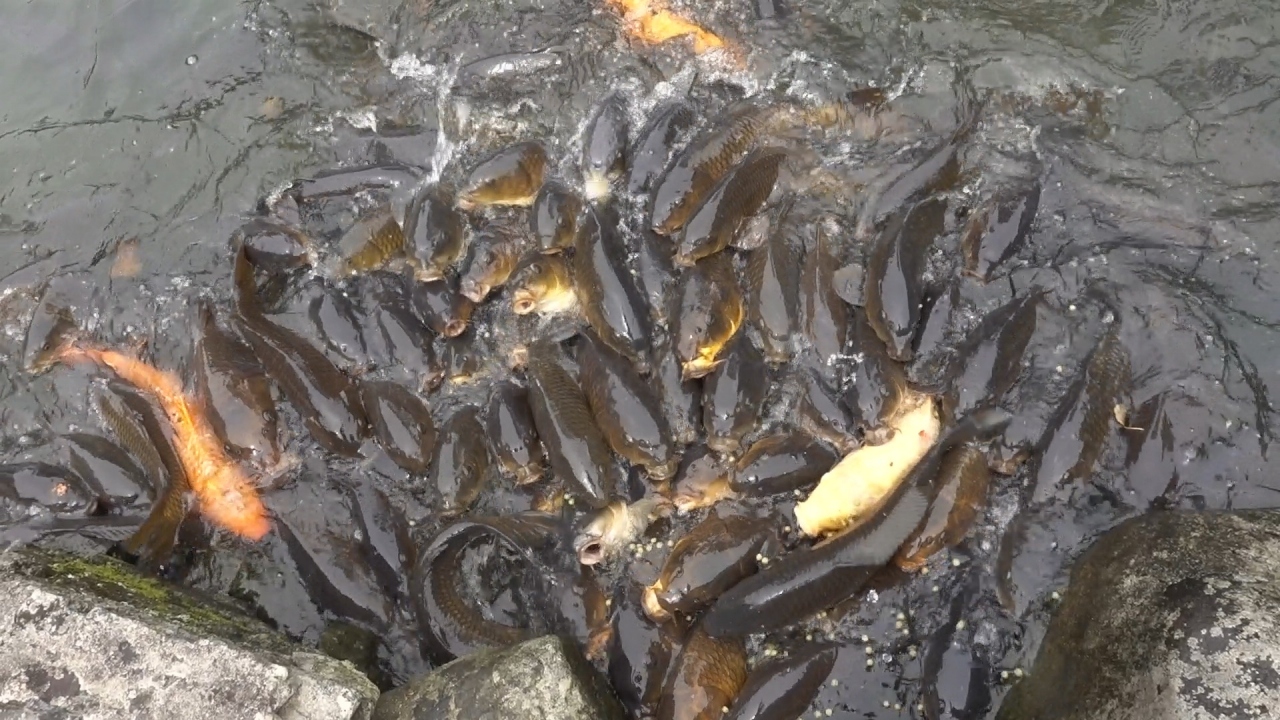 餌をパラパラ。
