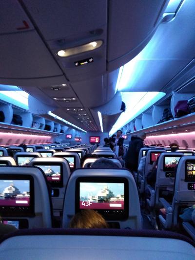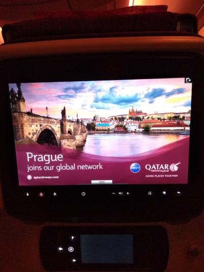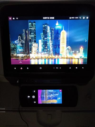 座席のモニター画面にはカタール航空の就航先が次々と映し出され、見ていて楽しく、飽きなかったです。