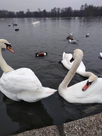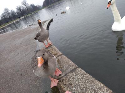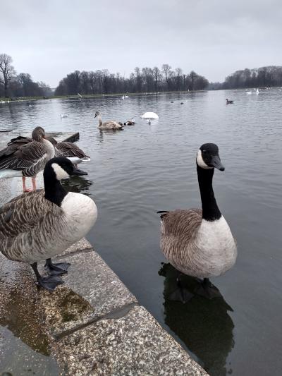 宮殿の目の前にはとても広いラウンド池があり、白鳥や鴨が沢山いて、人間に結構慣れていて、呼ぶと寄ってきます。