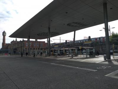 - ブリストル・テンプル・ミーズ駅からのバスが停車するバス停「Town Hall」すぐ傍