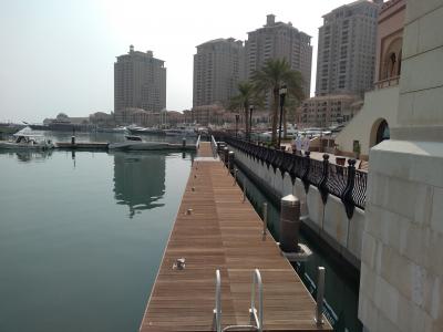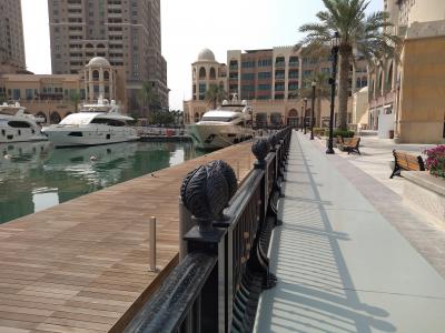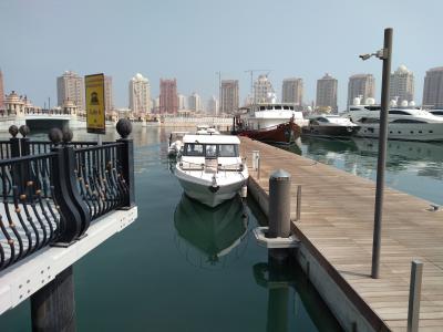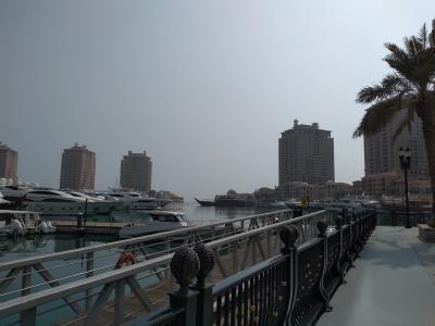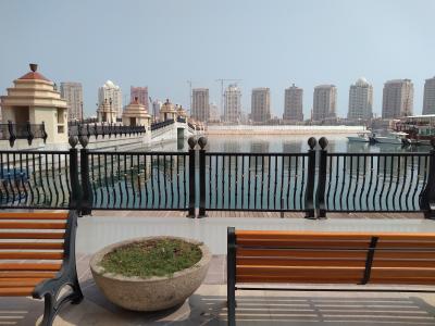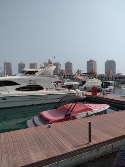 海とボートとヤシの木と青空のコントラストが素敵で、遠くに見える高級マンション群がゴージャスな雰囲気を醸し出しています。