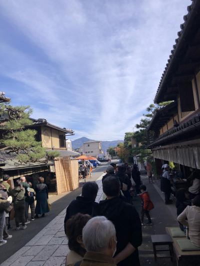 あぶりもち目当ての人で行列です。並んで順番を待ちます。
