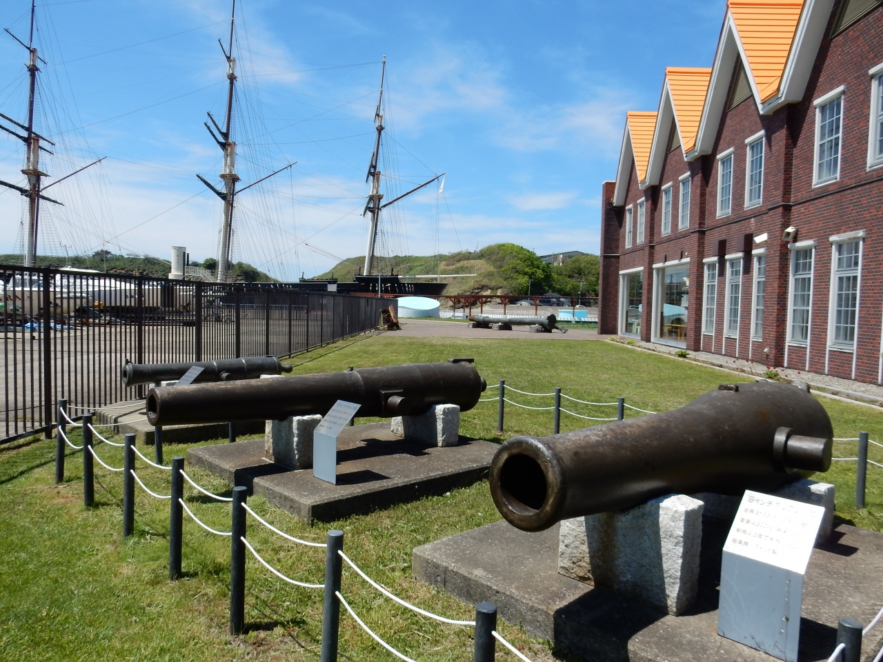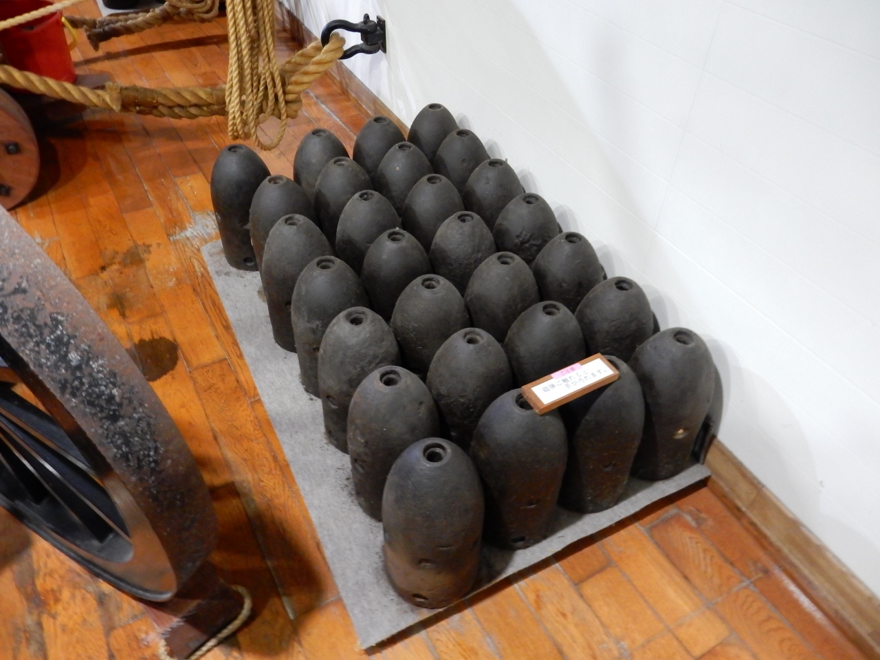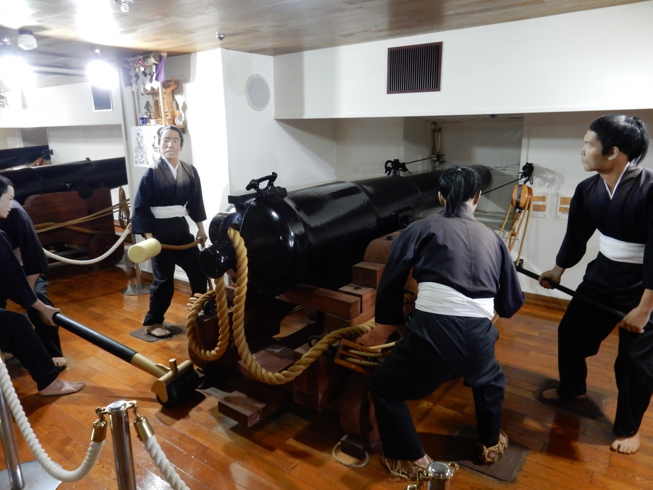 砲身や、砲弾などを引き上げ、復元した開陽丸の中に展示してあり、迫真の兵隊の人形が大砲を撃とうとしています。甲板に上がれば、船乗り気分も味わえますね。