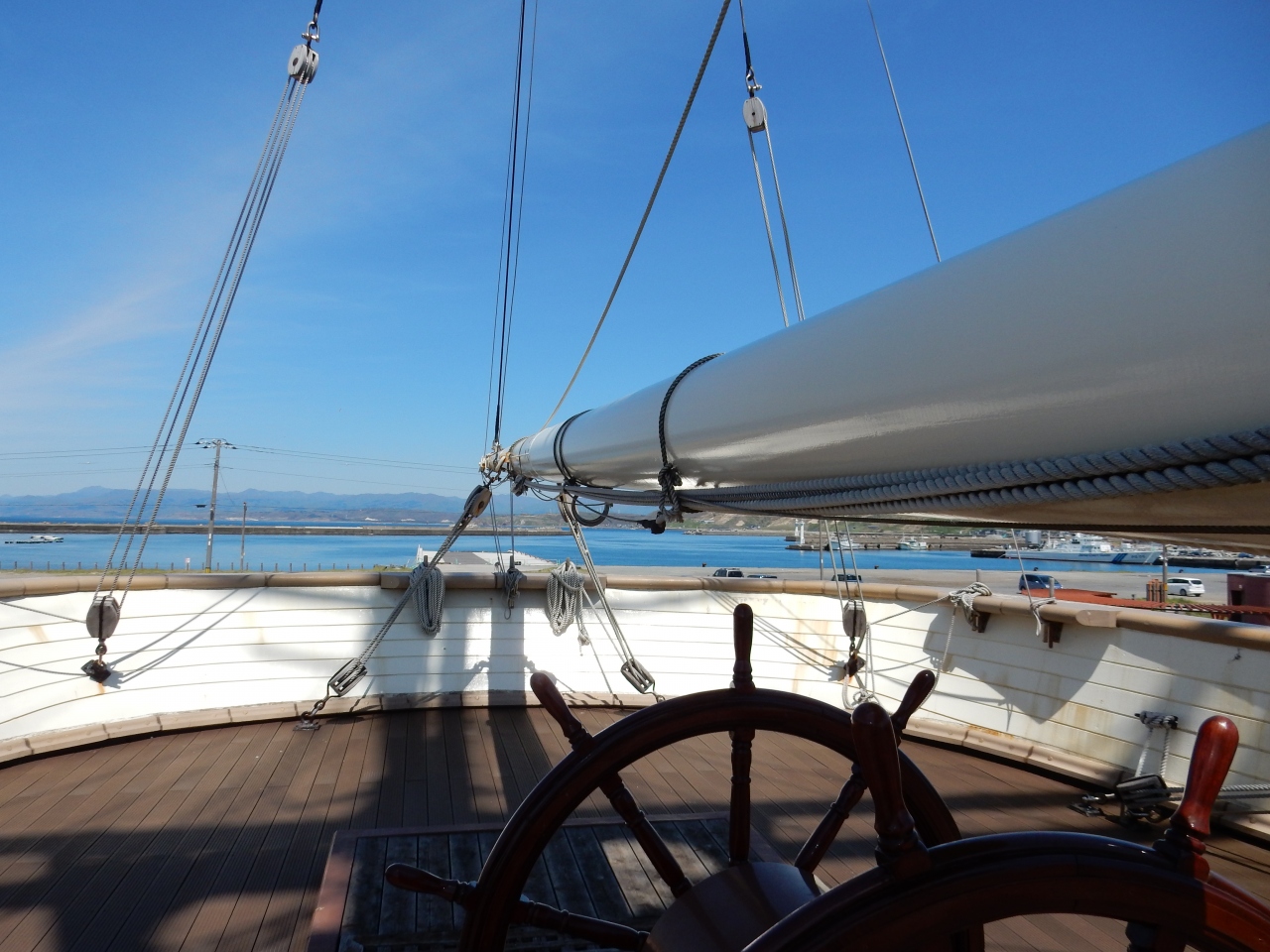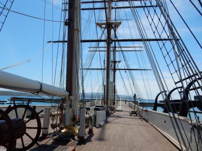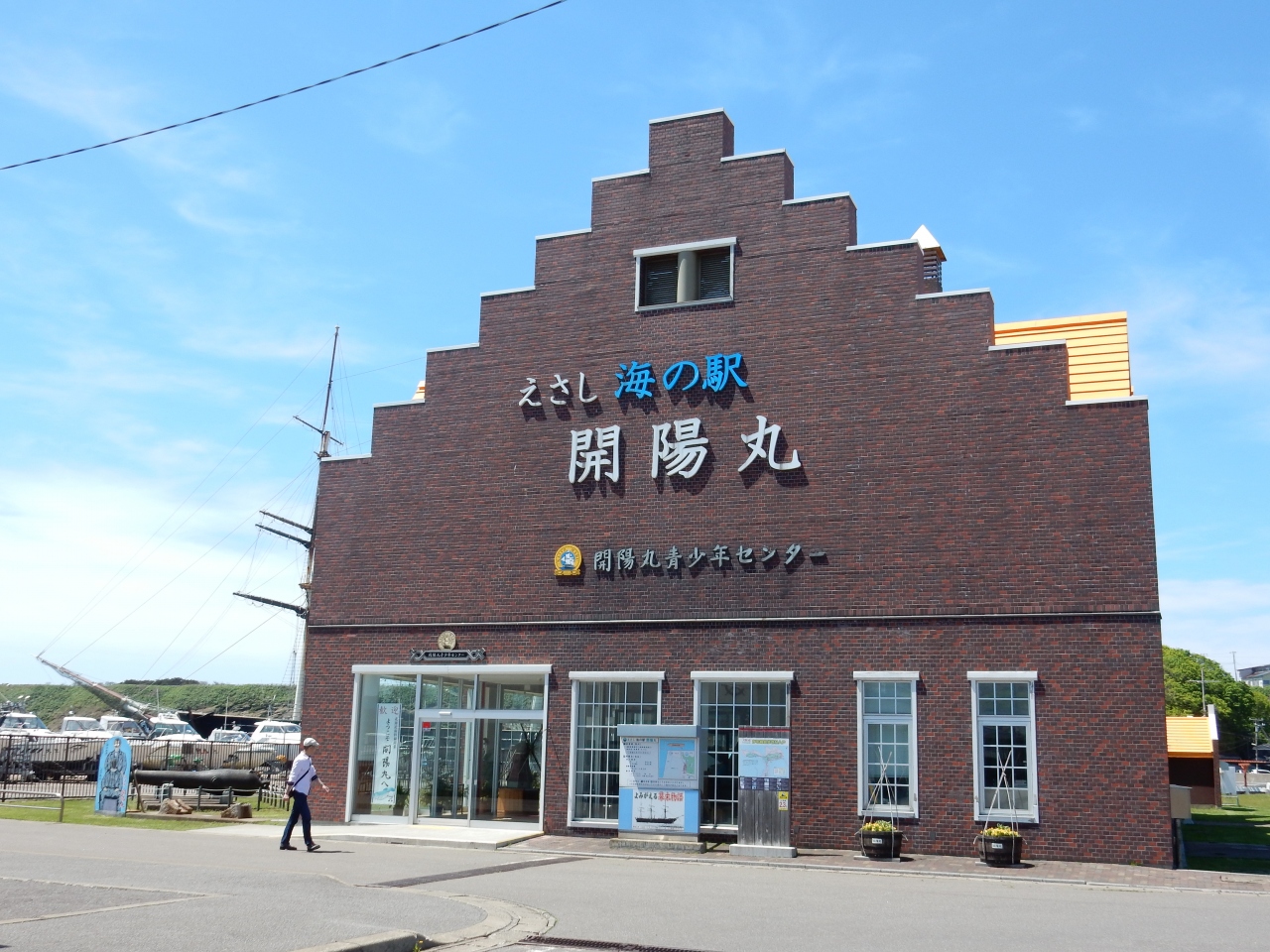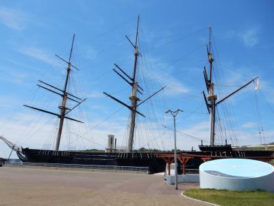 旧幕府軍の戦艦開陽丸は、江差を攻撃後、江差で座礁沈没したそうです。それを地域おこしにと開陽丸を復元し、あたかも港に浮いているかのように展示してあります。遠くからもマストが見えるので、江差に向かえば、車でも間違いなく到達できます。