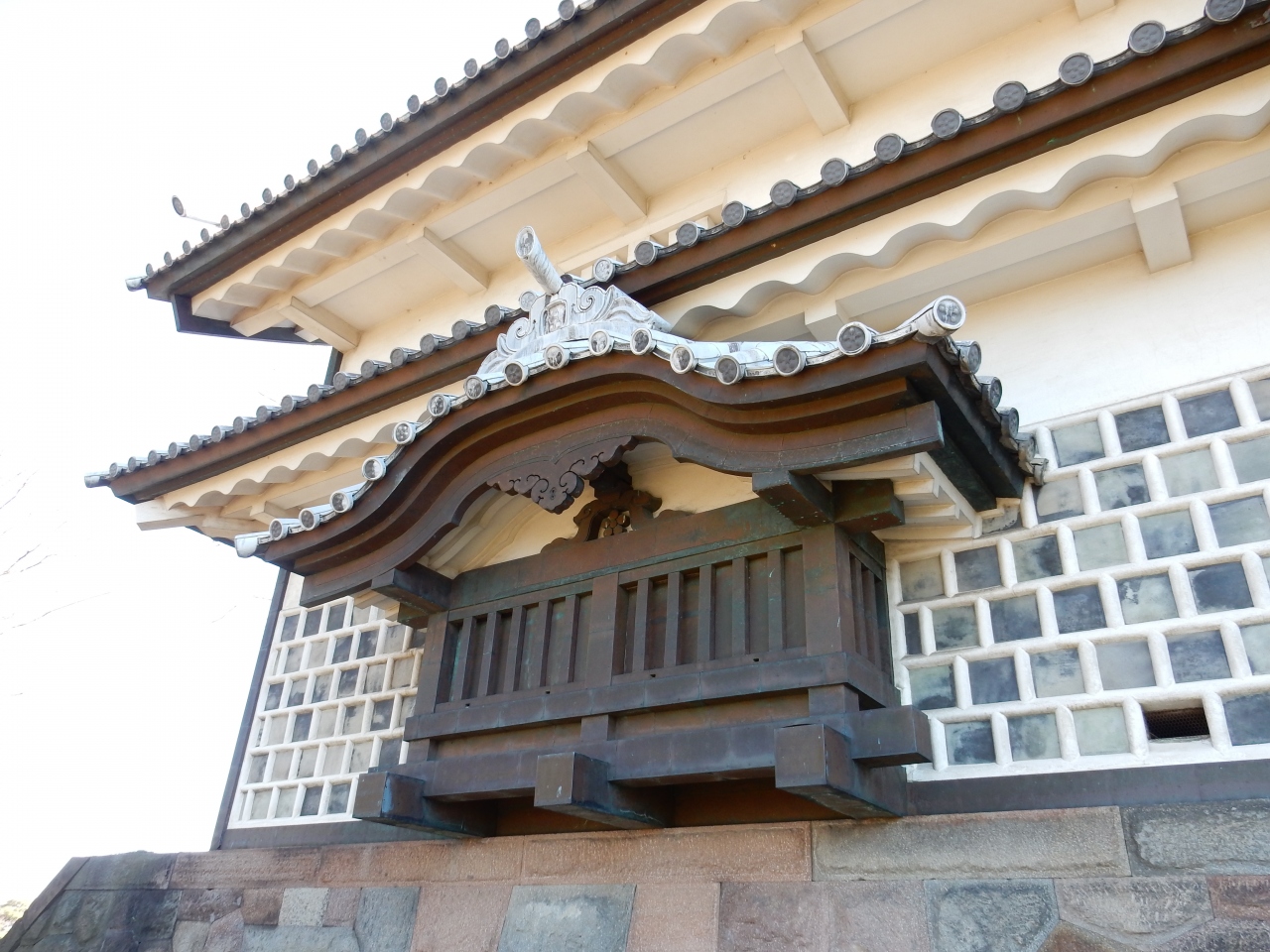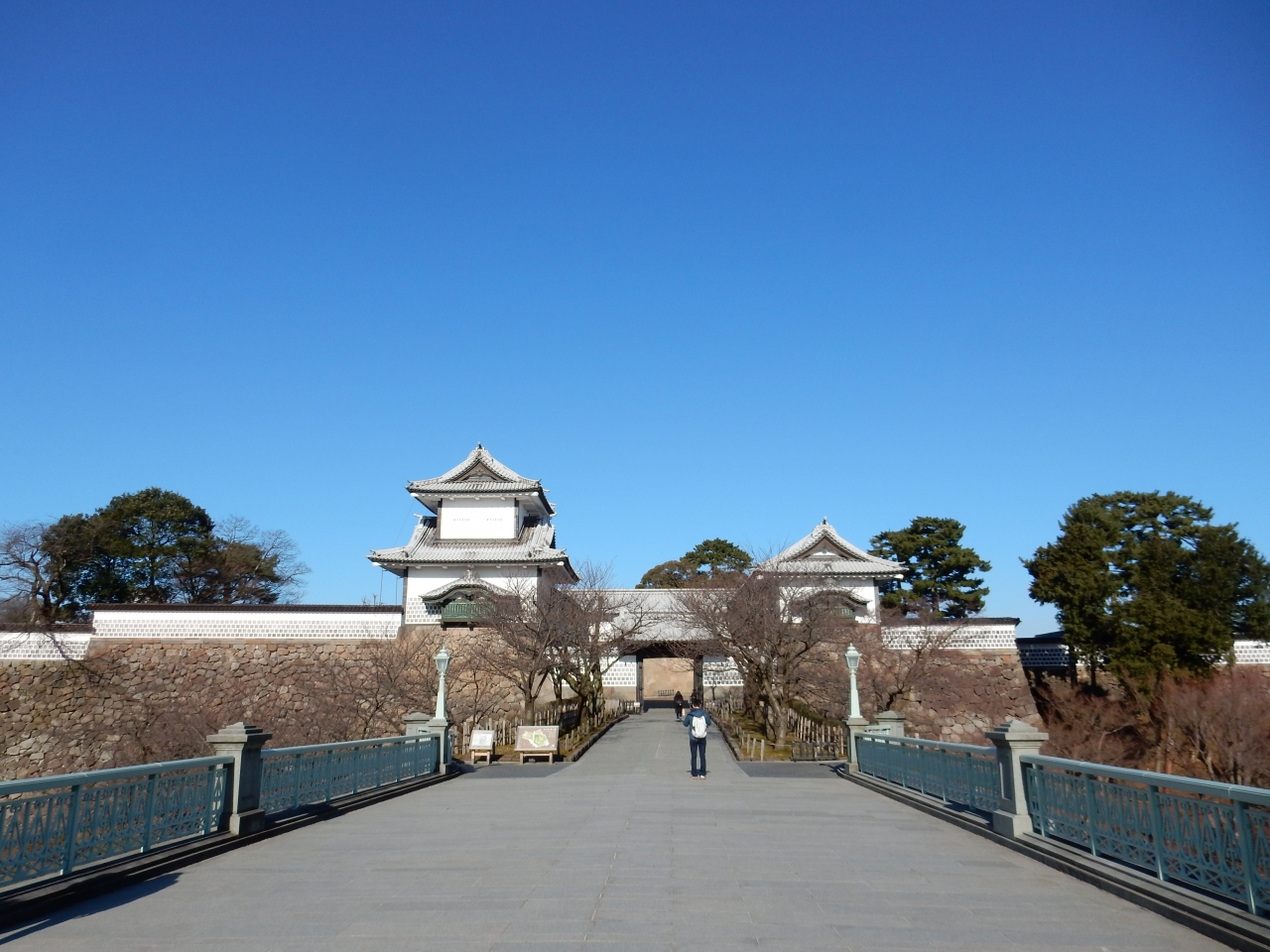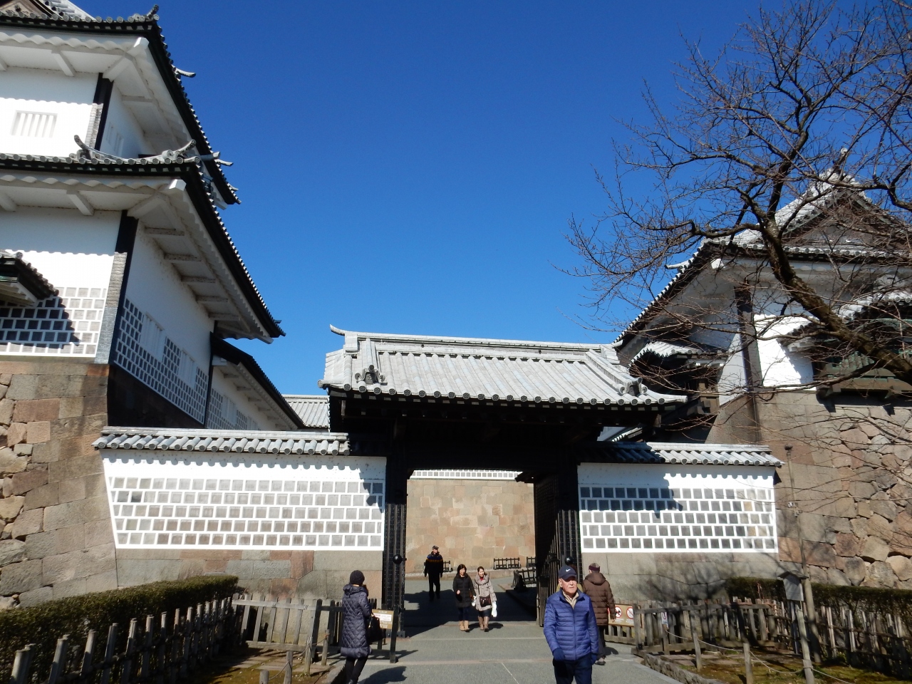 大量の戦死者を、このから堀を通って場外に運び出したとかで、そこを渡る橋を「極楽橋」と呼ぶと聞きました。橋を渡って極楽へではなく、橋の下をくぐって極楽へ・・・なのですね。金沢城の前身、尾山御坊の時代の信長軍との戦いのことでしょうから、その時代からここに堀と橋があったのでしょうかね? ボランティアガイドさんに聞きたかったけど、あまり詳しくない方のようなので突っ込むのは止めておきました。