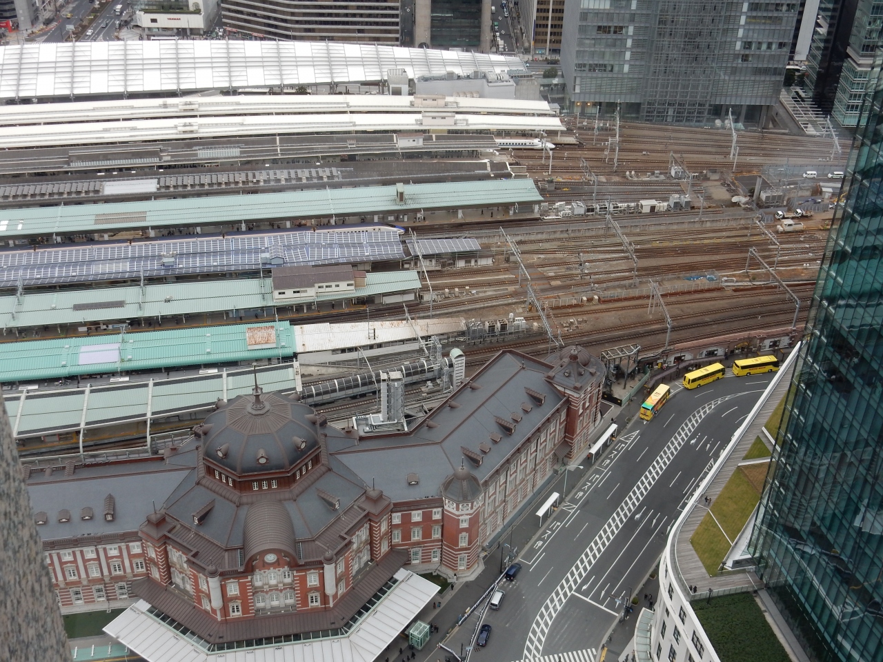 35階の窓からは真下に東京駅が見え、列車が模型のように走っているのが見えます。鉄道好きにはたまらないですね。