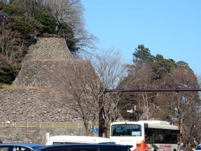 バスを降りて、昔の堀底から見上げる石川門にまず感動します。素敵だ! 石川門付近の高石垣(東の丸北面石垣)がまた見事なんですよー。