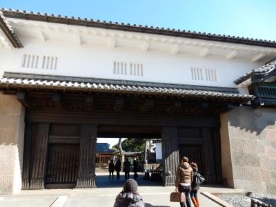 この現存の石川門をくぐると、あこがれの五十間長屋、菱櫓、橋爪門、橋爪門続櫓が目に入ってきます。あー素晴らしい! 見事だ! これだけのものを復元するのには莫大な金が必要でしょうが、よくぞ復元してくれました。海鼠壁も、白い鉛瓦も本当に美しい。