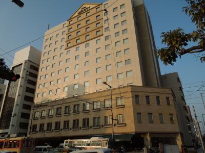ツアーで申し込んでいたので、勘違いがあり、当然ツインと思っていたのですが、通されたのがセミダブル1つの部屋でした。どおりで安いわけだ。ツインに変えてくださいと頼むと、すぐに代えていただけました。もちろん追加料金は必要でしたが。しかし、窓からは憧れの松山城が見えるし、足元には外堀があるし。イヤー良かった!部屋は清潔だし、朝食も美味しいし、文句なし!