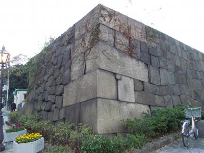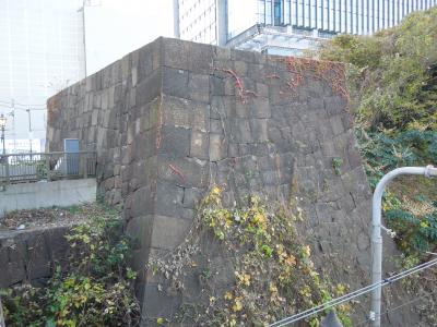 飯田橋駅を西に出たところ、道路の左右にどーんと石垣が聳えています。ここが牛込御門の枡形があったところ。雑草が覆っている部分もあり、なんの手入れもしていないようにも見えます。しかし、よく見ると、かなり立派な石垣です。江戸城本丸、二の丸、三の丸の門跡の石垣よりは石の大きさが小さいようですが、一般的な城の石垣よりも大きな石が使われていると思います。石の大きさは、財力を誇示するものだそうですので、流石に徳川幕府の城ということなのでしょう。この石垣の上に櫓門が載っていたはずで、復元は道路の関係上も不可能ですが、雑草を払って史跡らしく保存していただきたいと思いました。