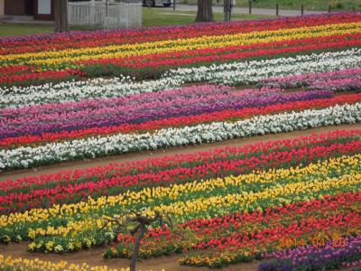 毎年チューリップを見に行きます。何回見ても見事ですよ。駐車場はありますが、公園の規模の割には少ないので、朝早めに行かれることをお勧めします。隣接するあけぼの山には展望台があって、小高い山の上からチューリップ畑を見渡すことができます。